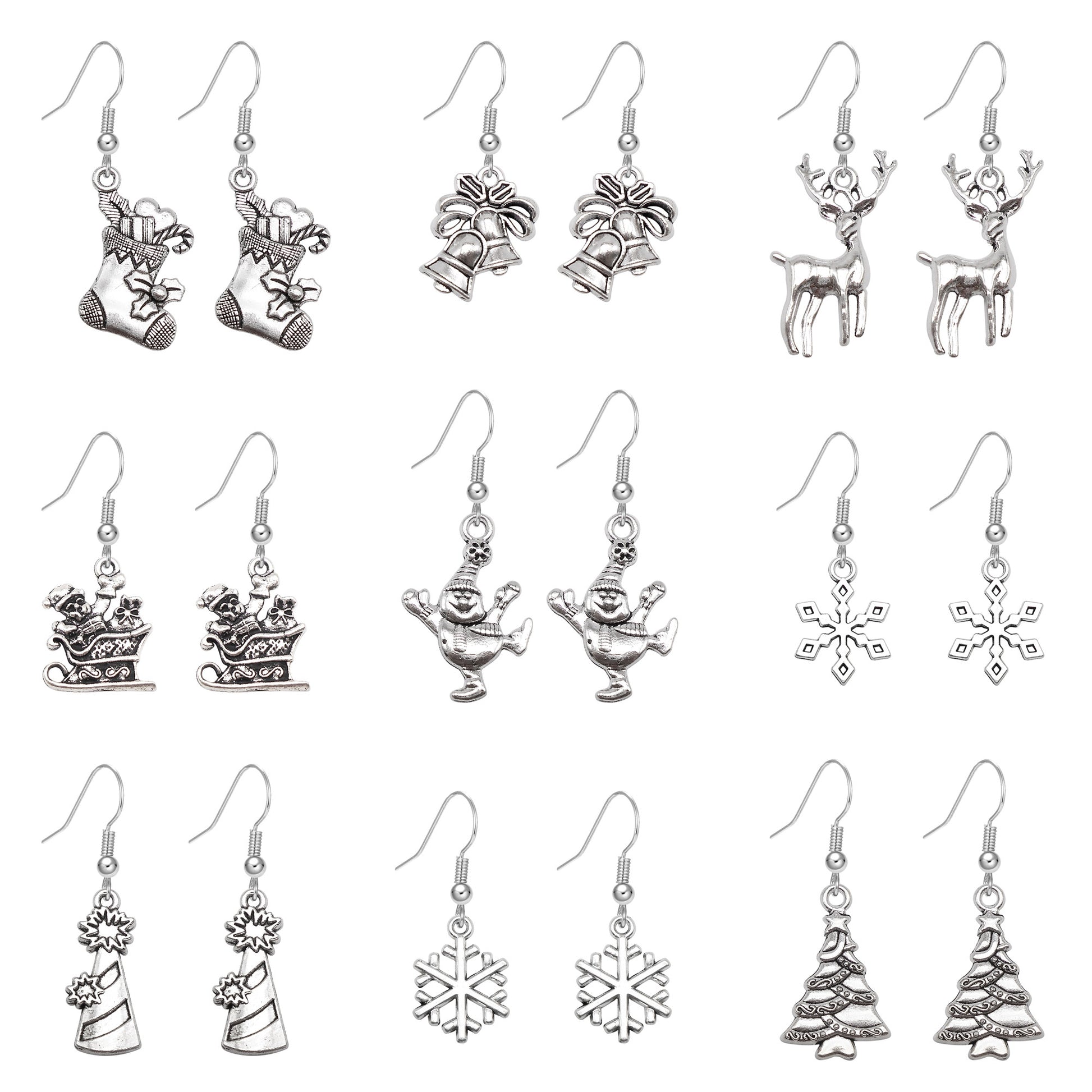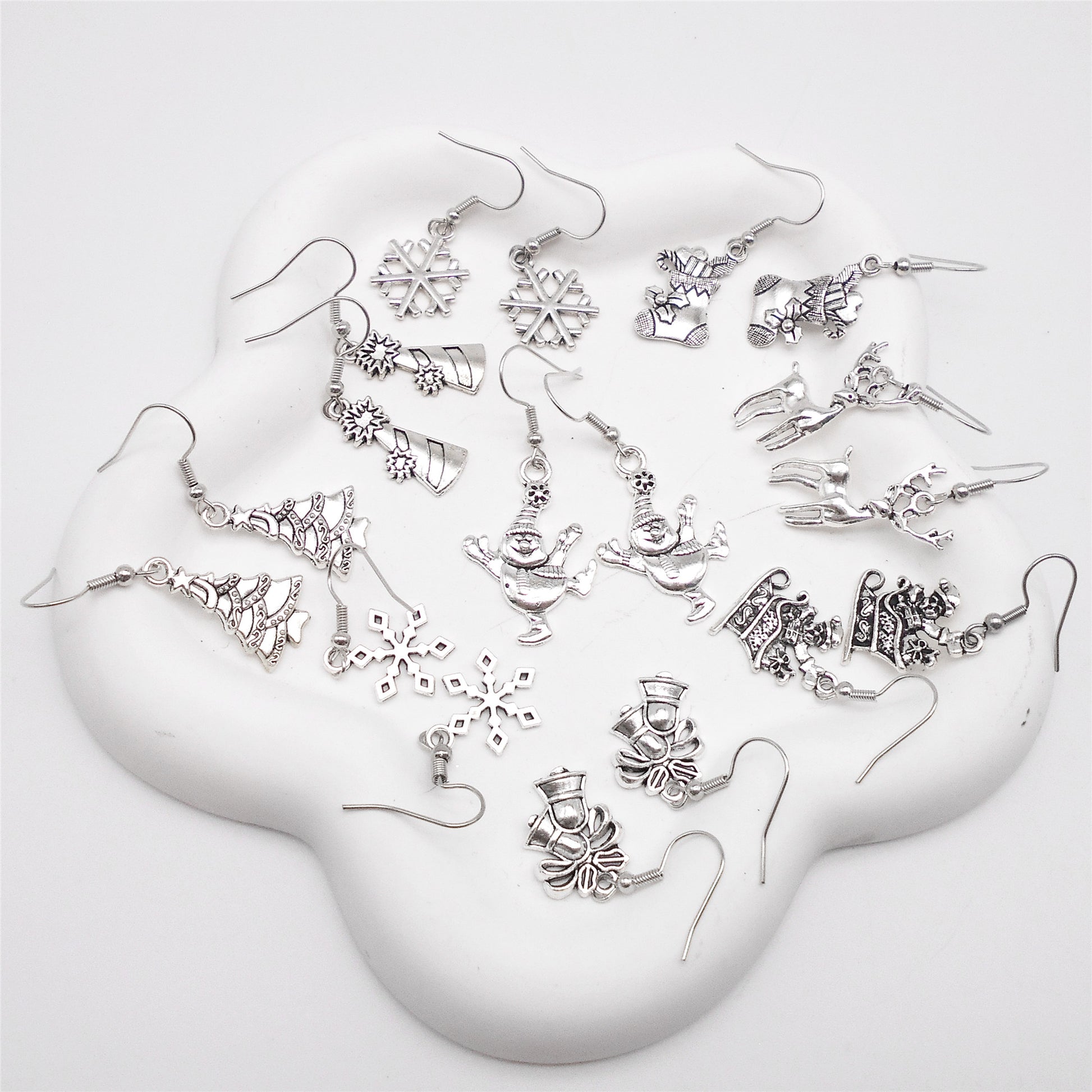 1 Pair Retro Silver Christmas Style Hook Earrings Alloy Elk Snowflake Christmas Tree Dangle Earrings Birthday&Festival Gifts Women Ladies Hypoallergenic Ear Jewelry for Daily Use