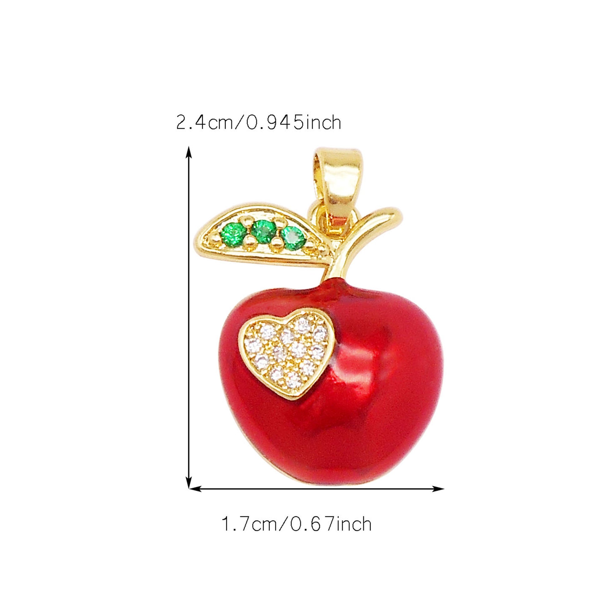 1 Piece 24x17mm Crystal Rhinestones Heart Embellished Enamel Apple Charms Copper Red Apple Fruit Pendant with Gold Leaf DIY Jewelry Making Accessories for Necklace Bracelet Earrings Decor