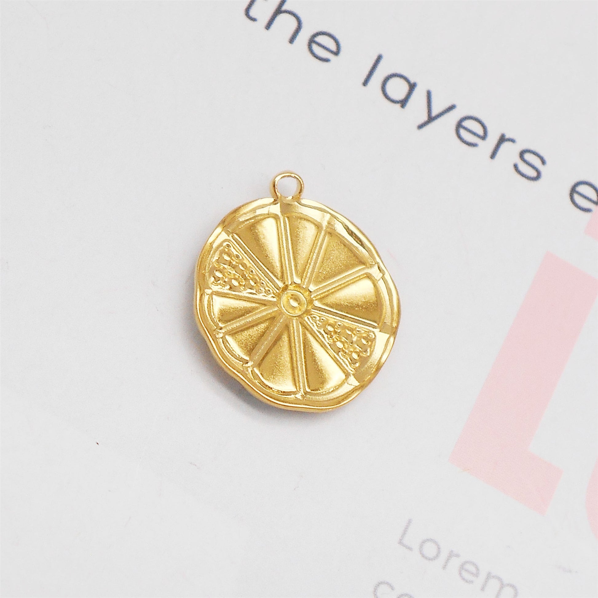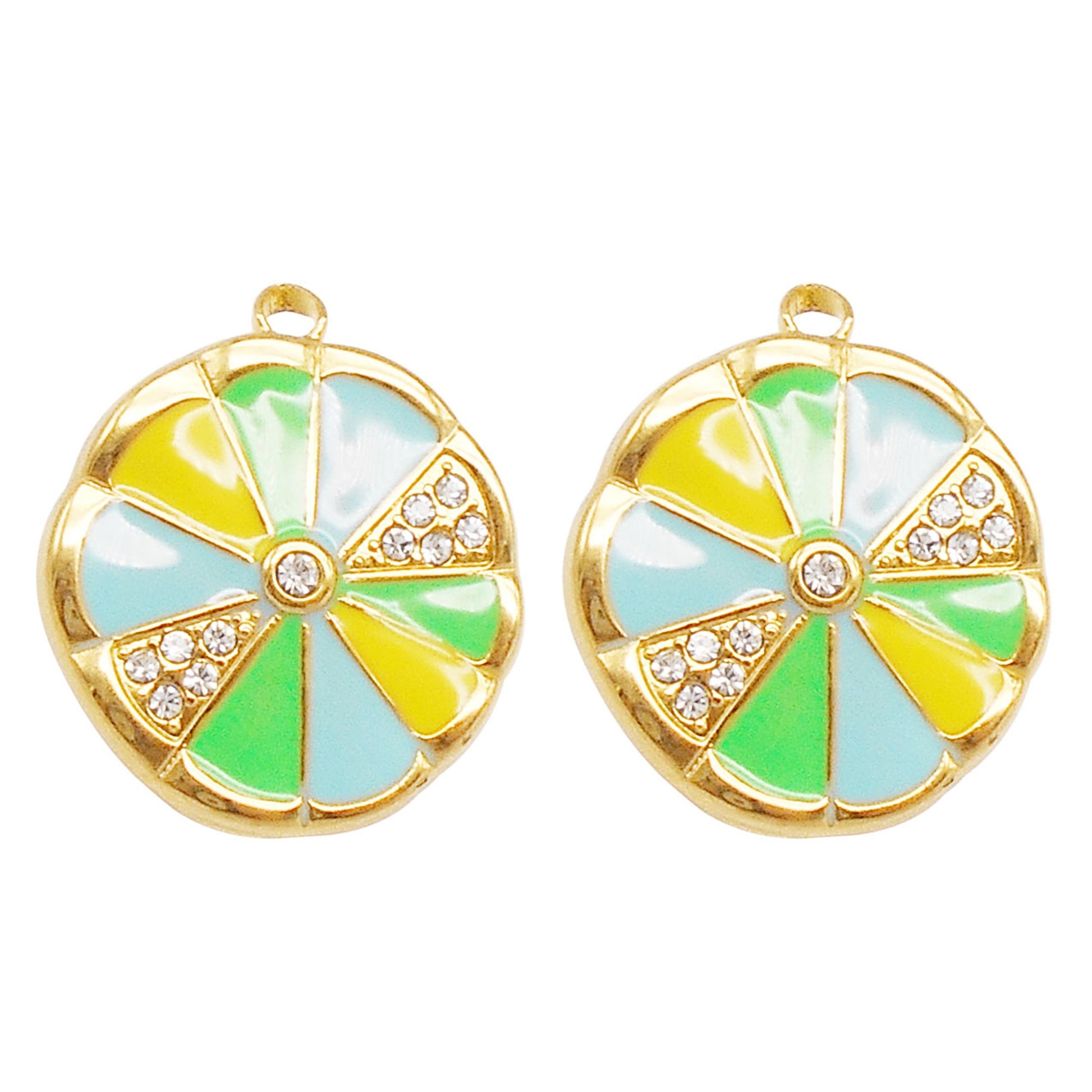 1 Piece 24x20mm Gold Bezel Frame Lemon Slice Charms Crystal Rhinestone Embellished Enamel Citrus Pendants Stainless Steel Accessories for Jewelry Making DIY Crafts Decor