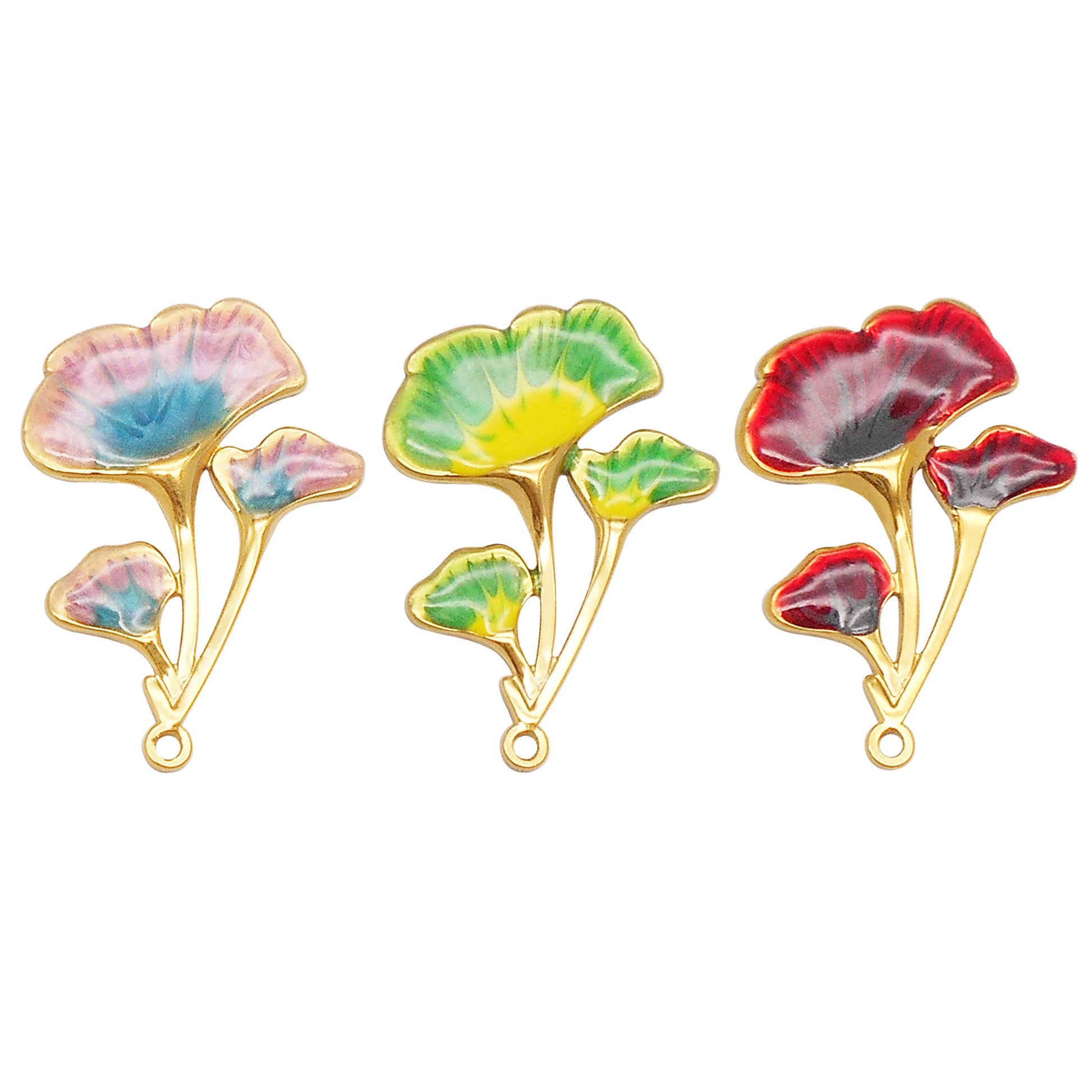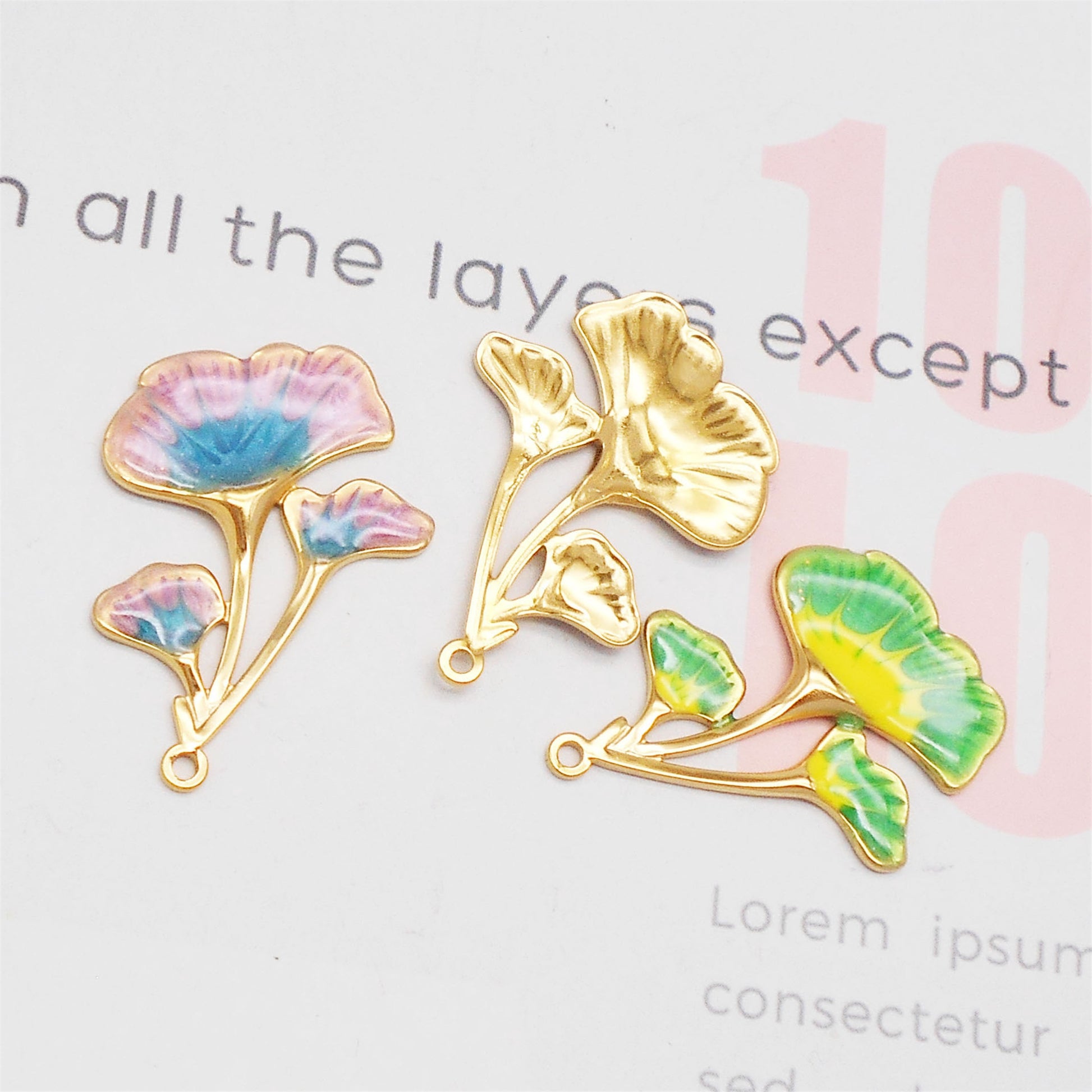 1 Piece 32x22.5mm Smooth Stainless Steel Ginkgo Fan Leaf Charms Enamel Ginkgo Pendants for DIY Necklace Bracelet Earring Making Accessories Keychain Keyring Decor