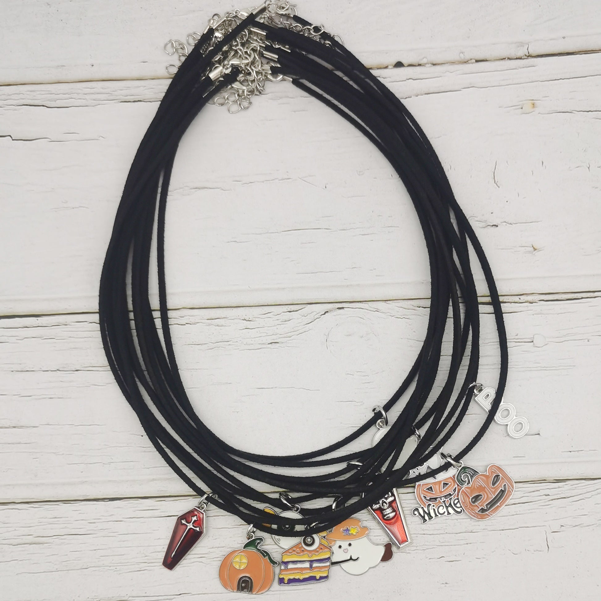 1 Piece Halloween Pumpkin Ghost Necklace - Korean Velvet Enamel Dangle Clavicle Jewelry for Women, Cute Metal Charm Necklace, Daily Wear & Festival Gift