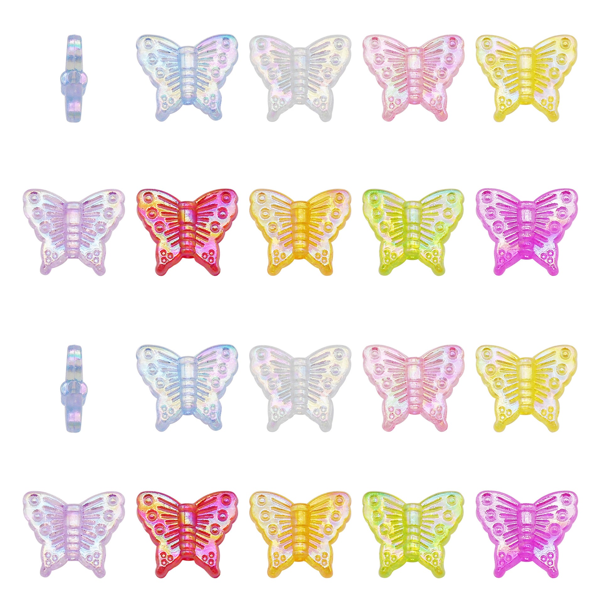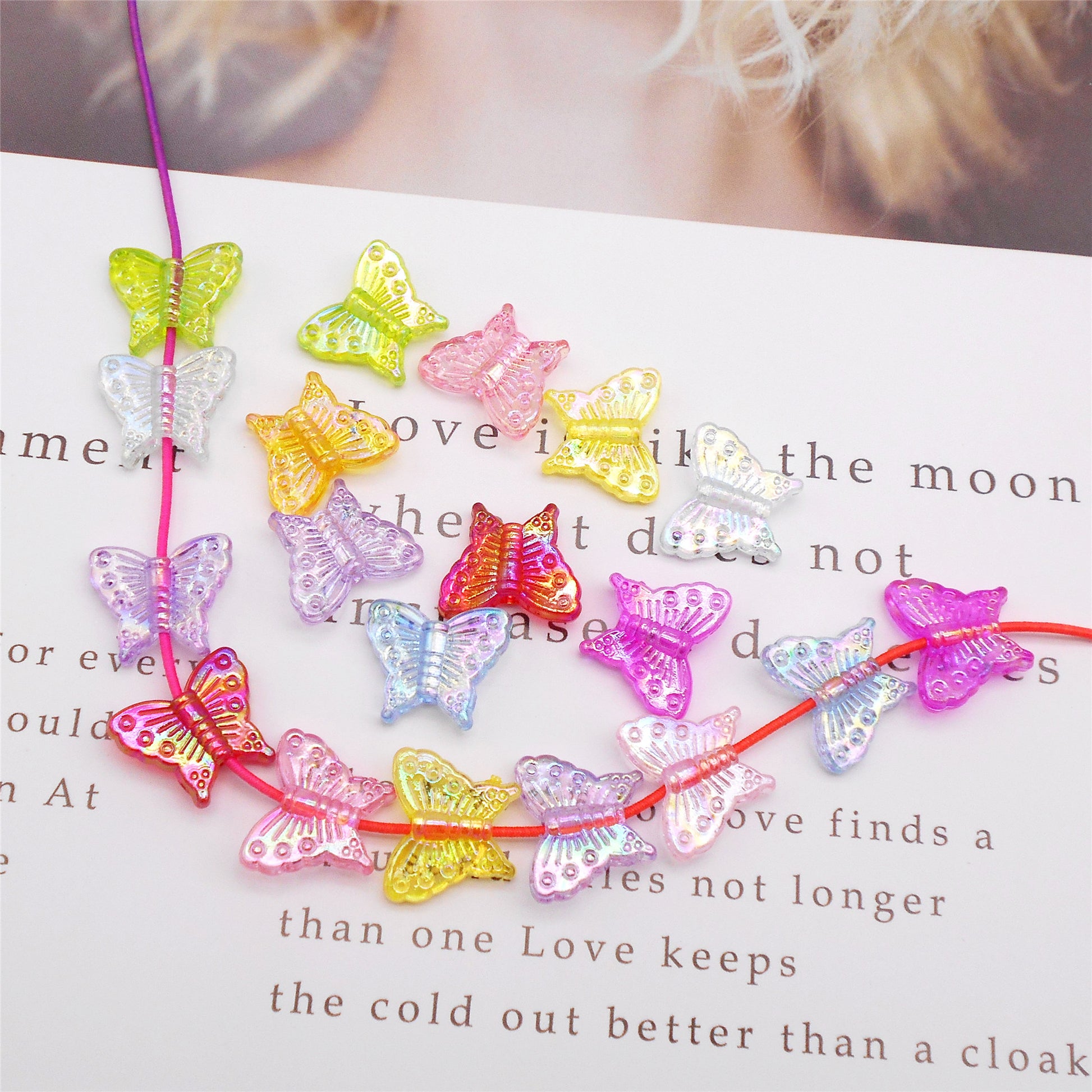 100Pcs 13.5x16mm Sparkling Butterfly Shaped Beads Plastic Spacer Beads for Necklace Bracelet Making Jewelry Crafts Supplies Phone Chain Decor