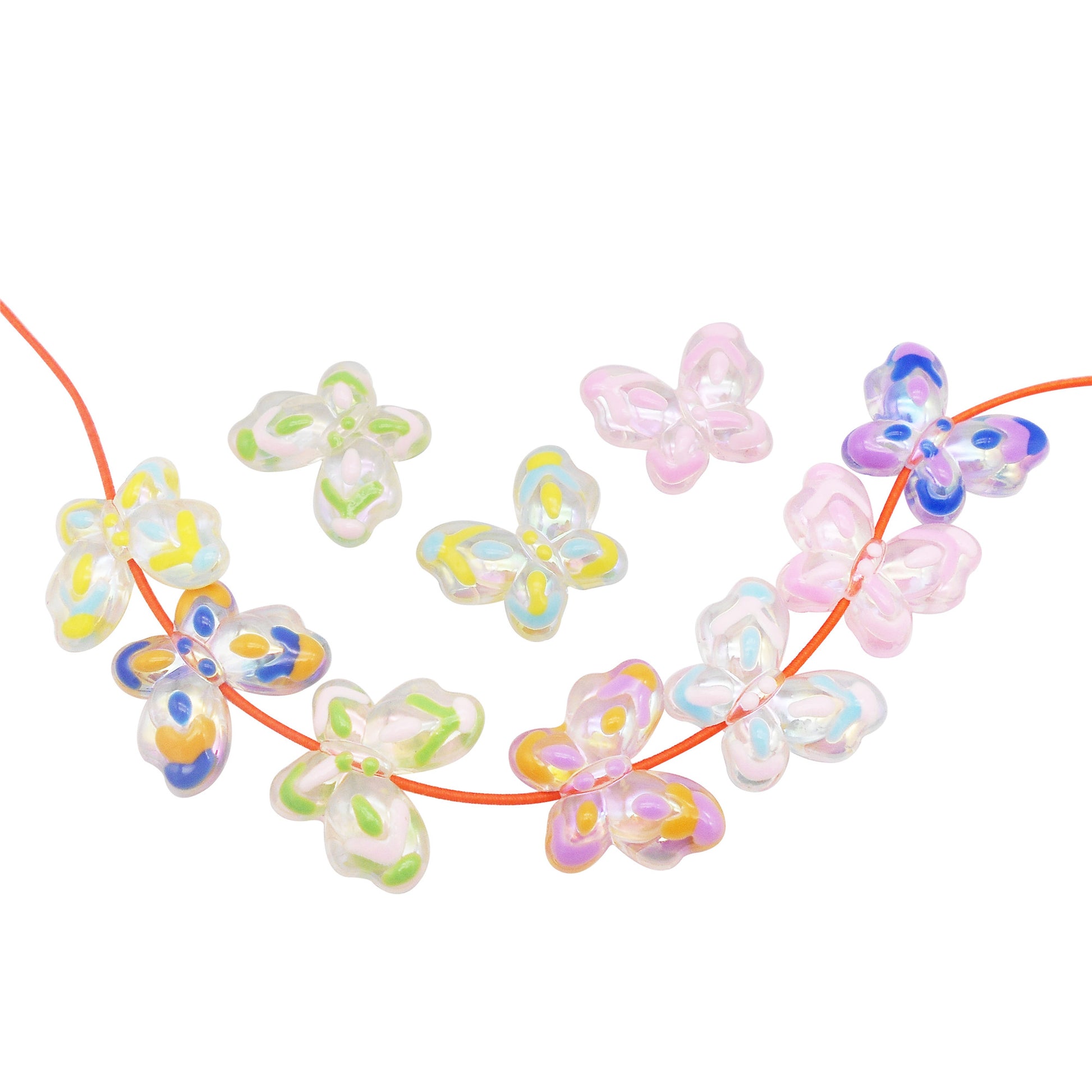 10PCS 18x21mm Cute Butterfly Shaped Beads Acrylic Painted Spacer Loose Beads DIY Necklace Bracelet Accessories Craft Decor Keychain Making Supplies