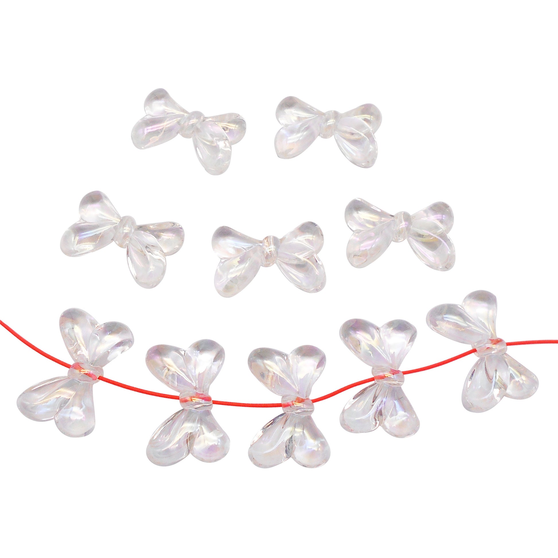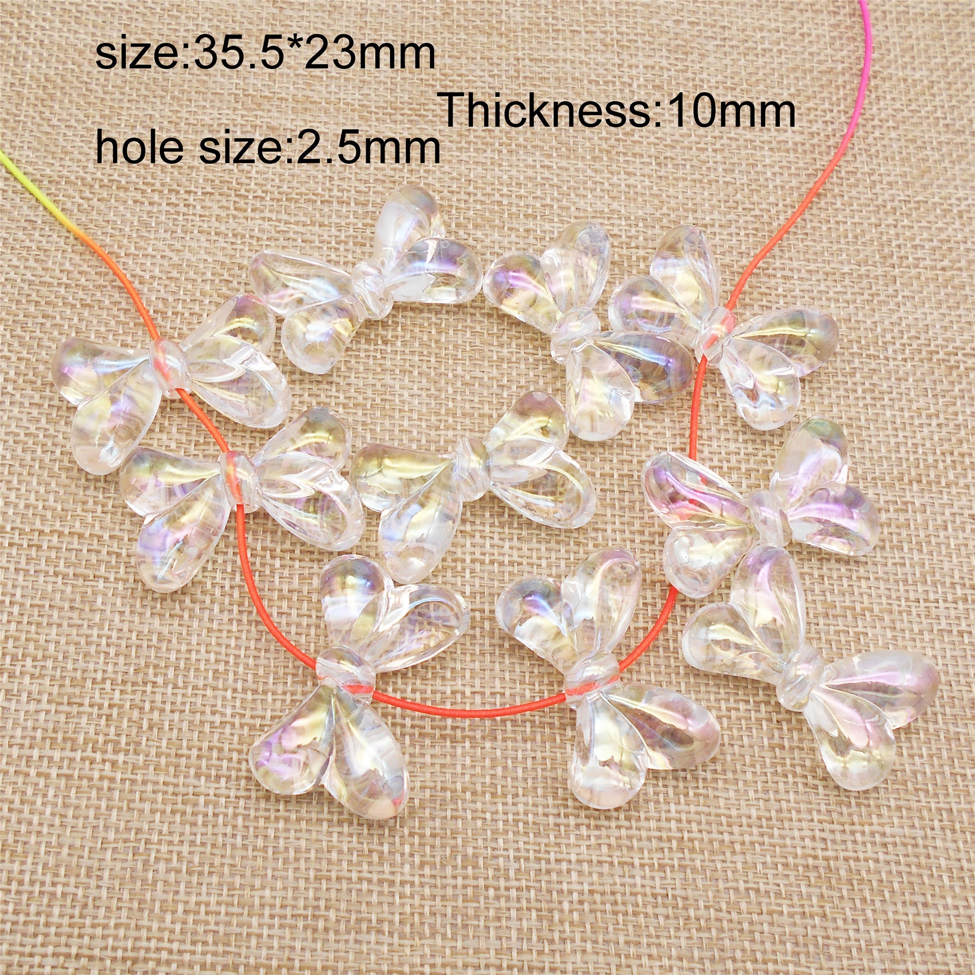 10Pcs 35.5x23mm Bowknot Shaped Beads Transparent Plastic Spacer Beads for DIY Jewelry Making Phone Chain Crafts Decor