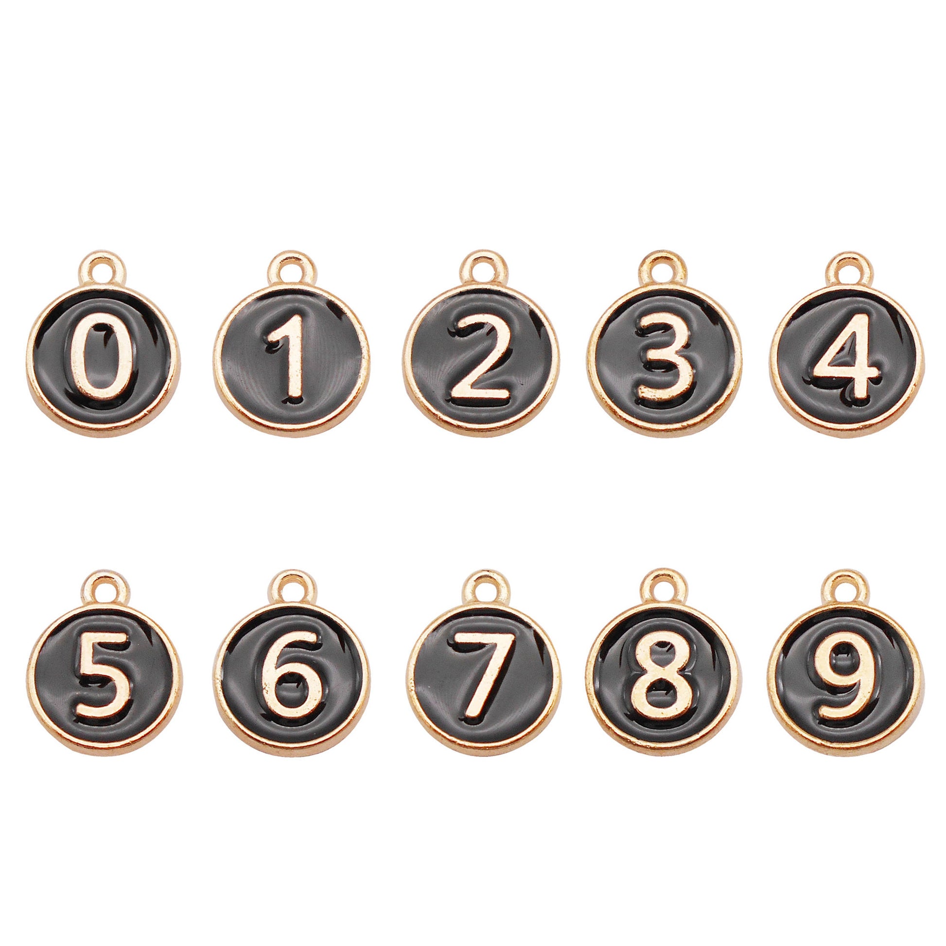 10Pcs Enamel Double-Sided Arabic Number Charm - 12x15mm Alloy 0-9 Design Pendant Tiny Jewelry Dangle for Necklace Bracelet Earrings Making