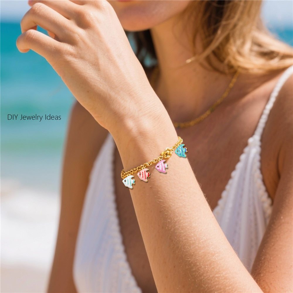 Add a splash of ocean fun to your crafts with this set of 10 double-sided enamel charms! Featuring playful sea life shapes like crabs, starfish, dolphins etc., each charm is crafted from durable stainless steel—perfect for jewelry making or DIY projects. Bright, durable, and ready to bring a beachy vibe to your accessories, these charms make every creation feel like a seaside adventure. Dive in and let your creativity swim free!