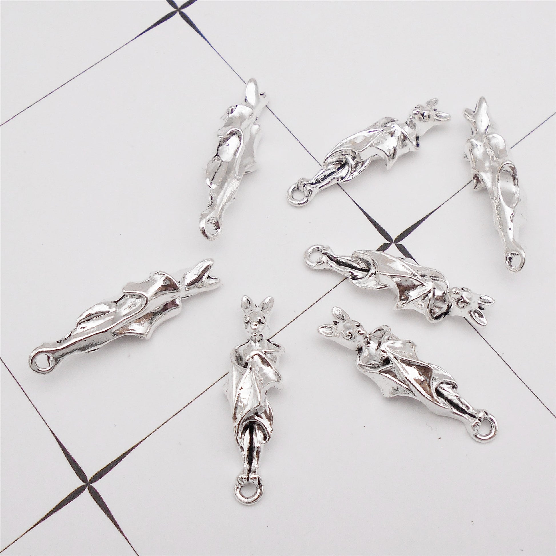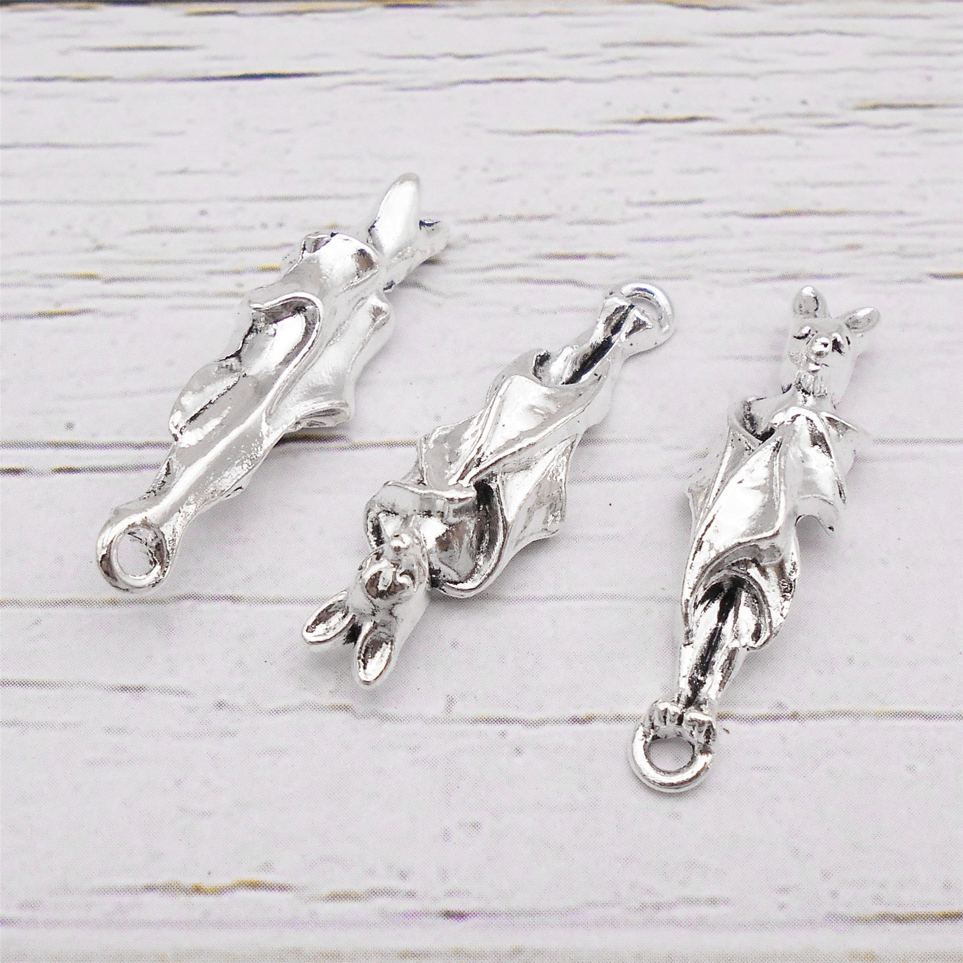 10Pcs Gothic Hanging Bat Charm 30x9mm Antique Silver Alloy Bat Pendant Halloween Dangle for Jewelry Necklace Bracelet Making DIY Crafts Decor