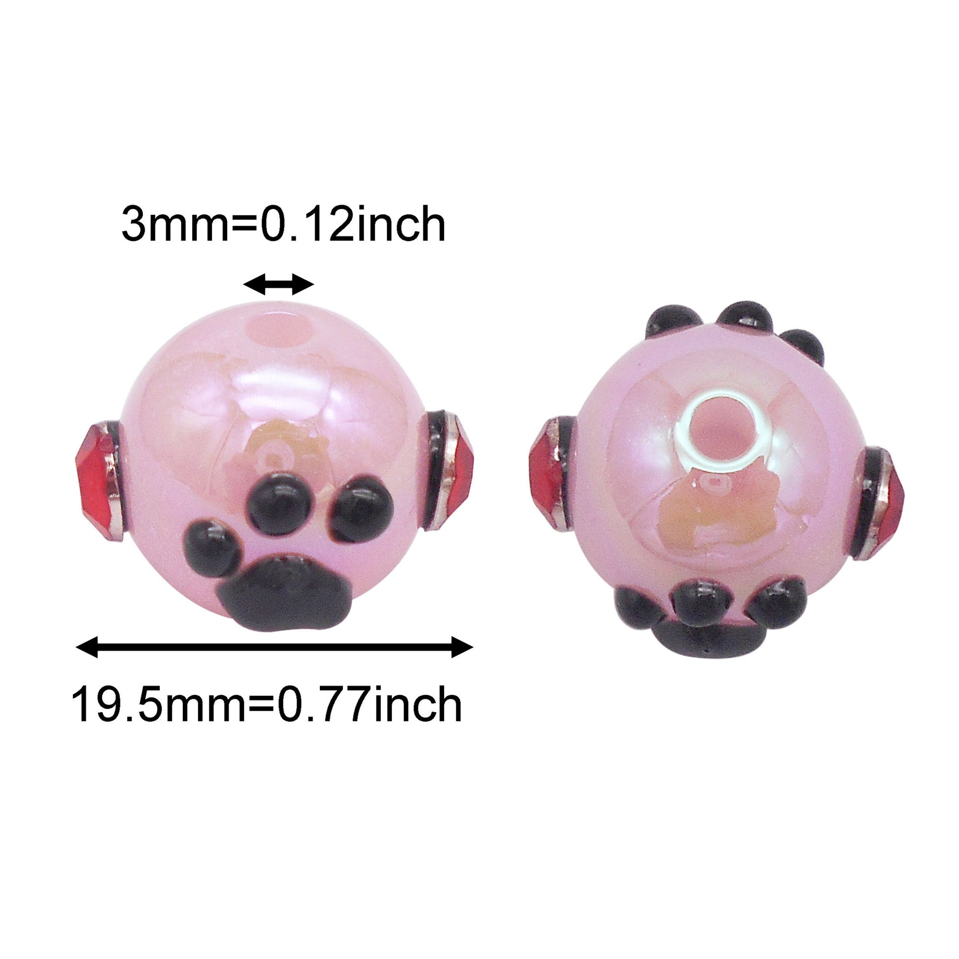 10Pcs Hand-Painted Round Beads Kit - Black Paw Print Designed with Red Rhinestones - Acrylic Spacer Beads & Crystal Accents for Jewelry Making Car Charm Accessories