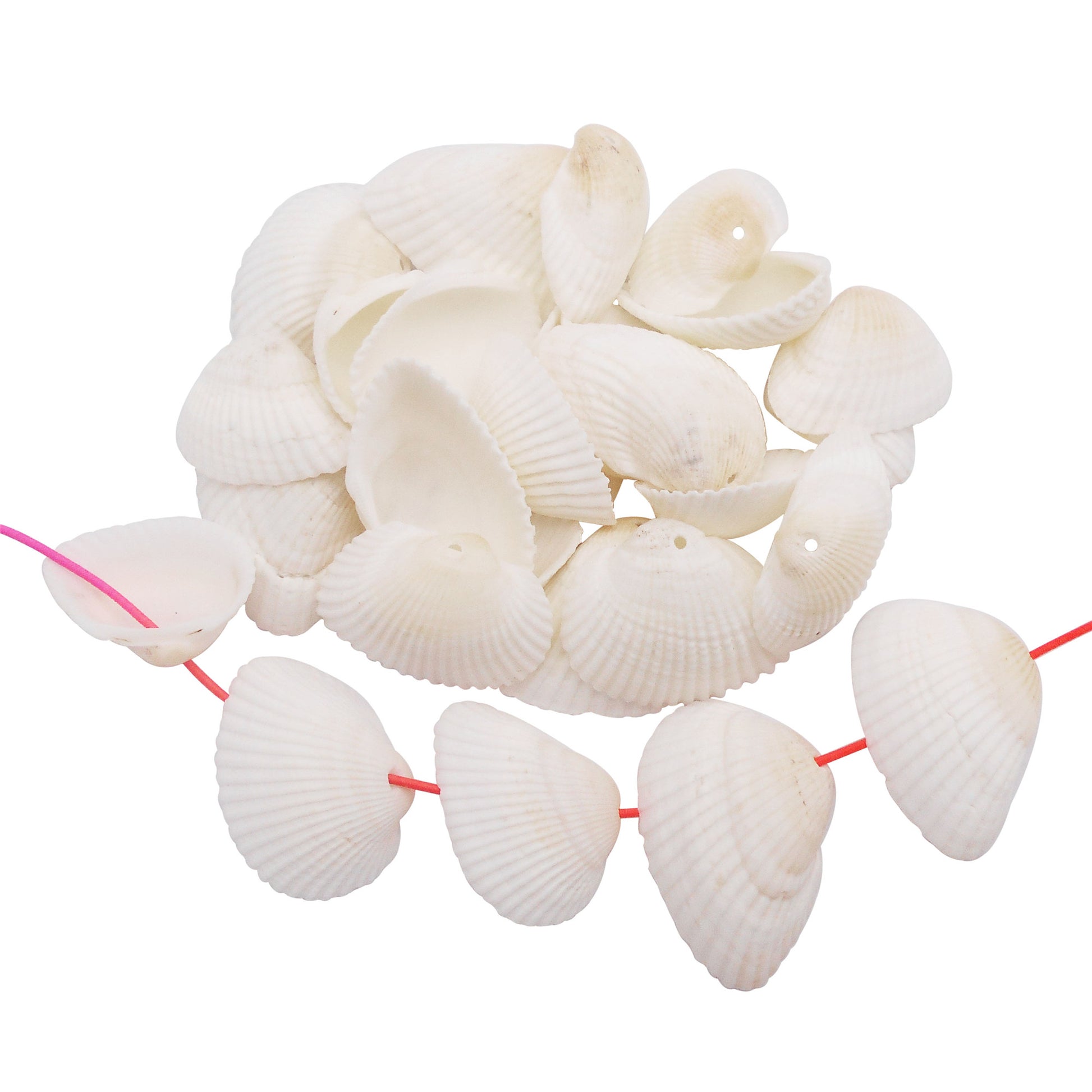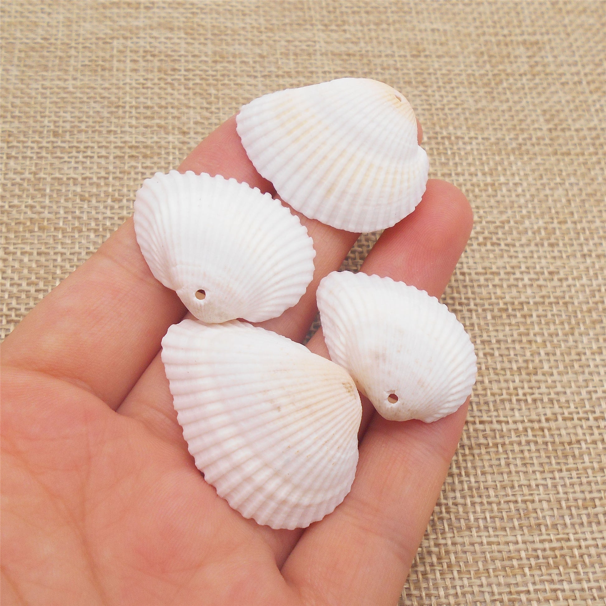 10PCS White Beach Shells Natural Cockle Shells Hole-Punched Seashell Pendant Charms for Earrings Necklace Making Accessories, Beach Wedding Decoration, Art Crafts Decor 20-40mm
