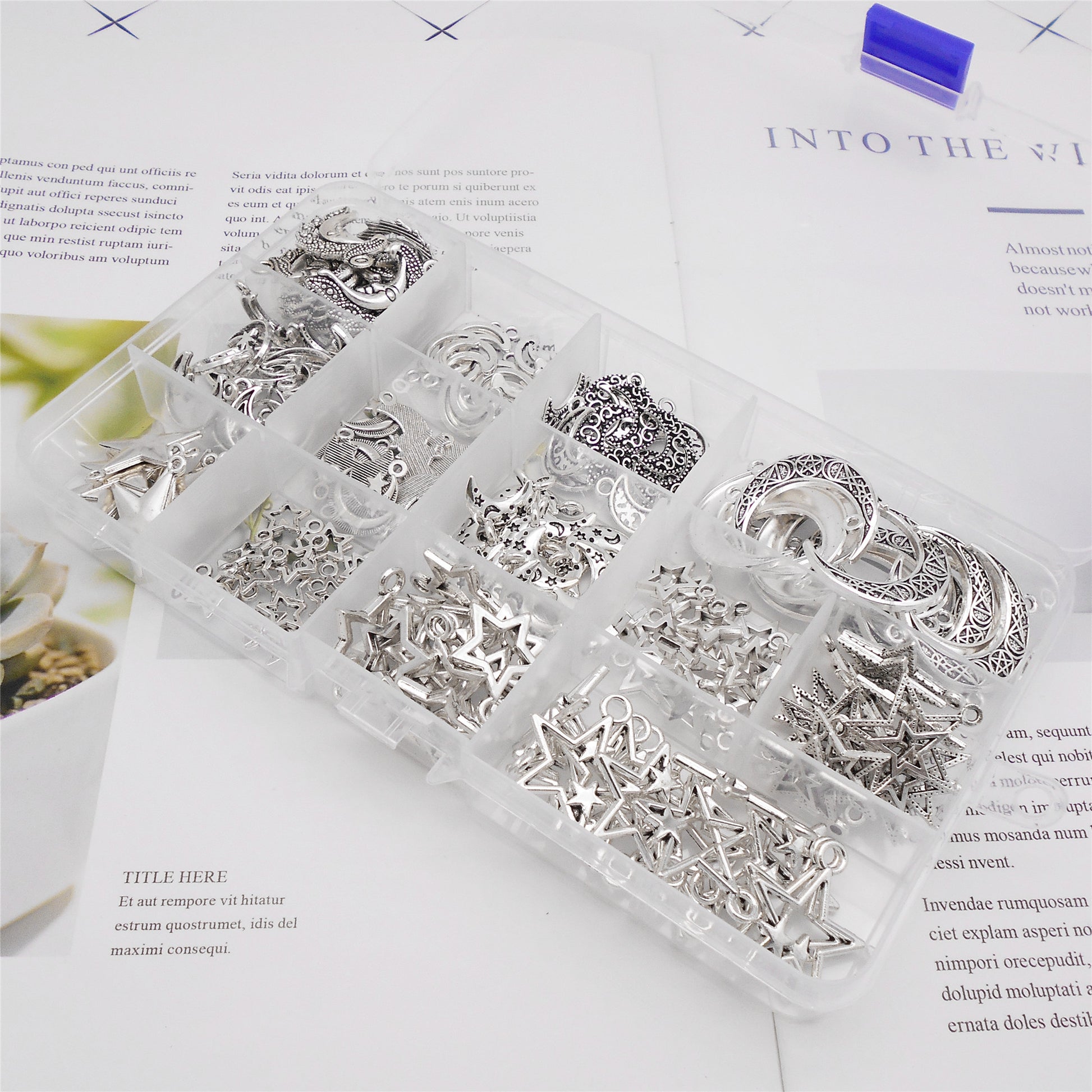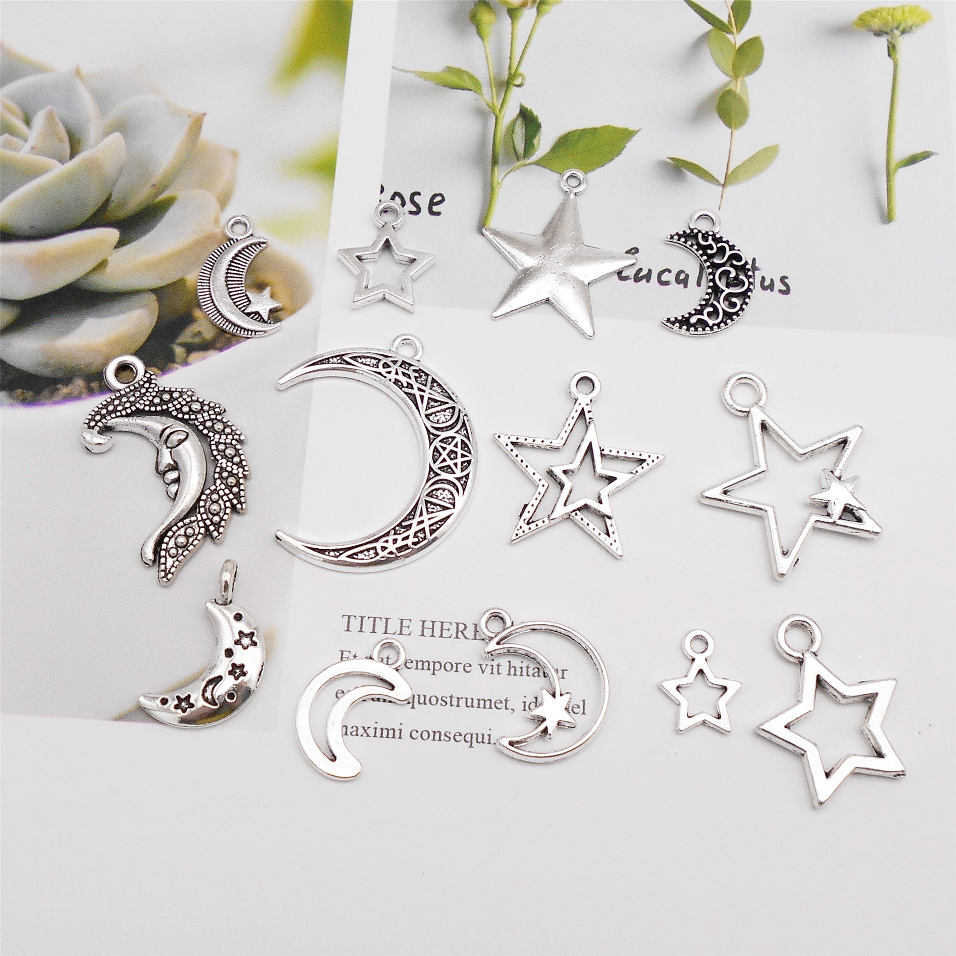 195-Box Retro Silver Moon Sun Star Charms Alloy Cosmic Series Pendants DIY Jewelry Making Accessories Crafts Supplies Phone Chain Decor