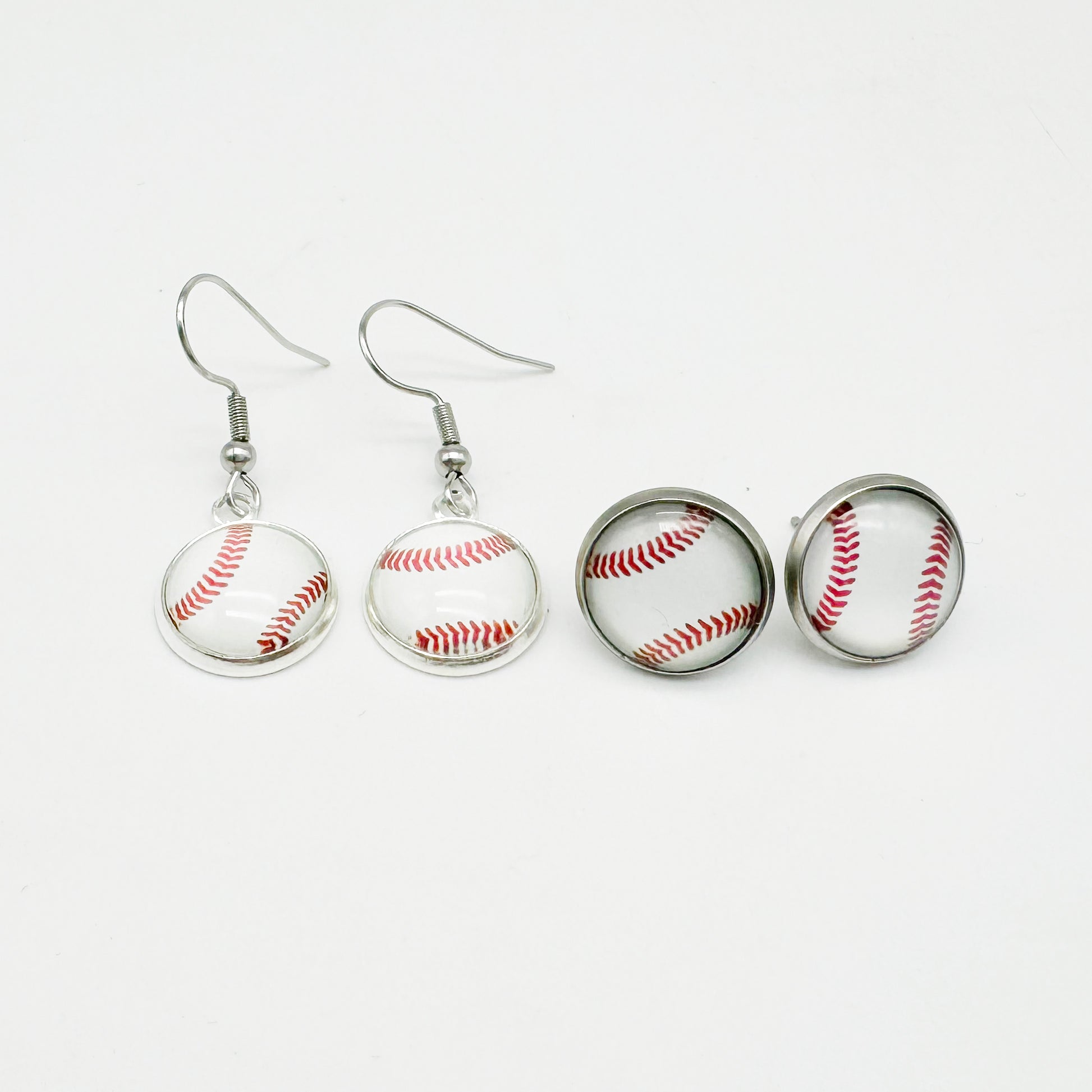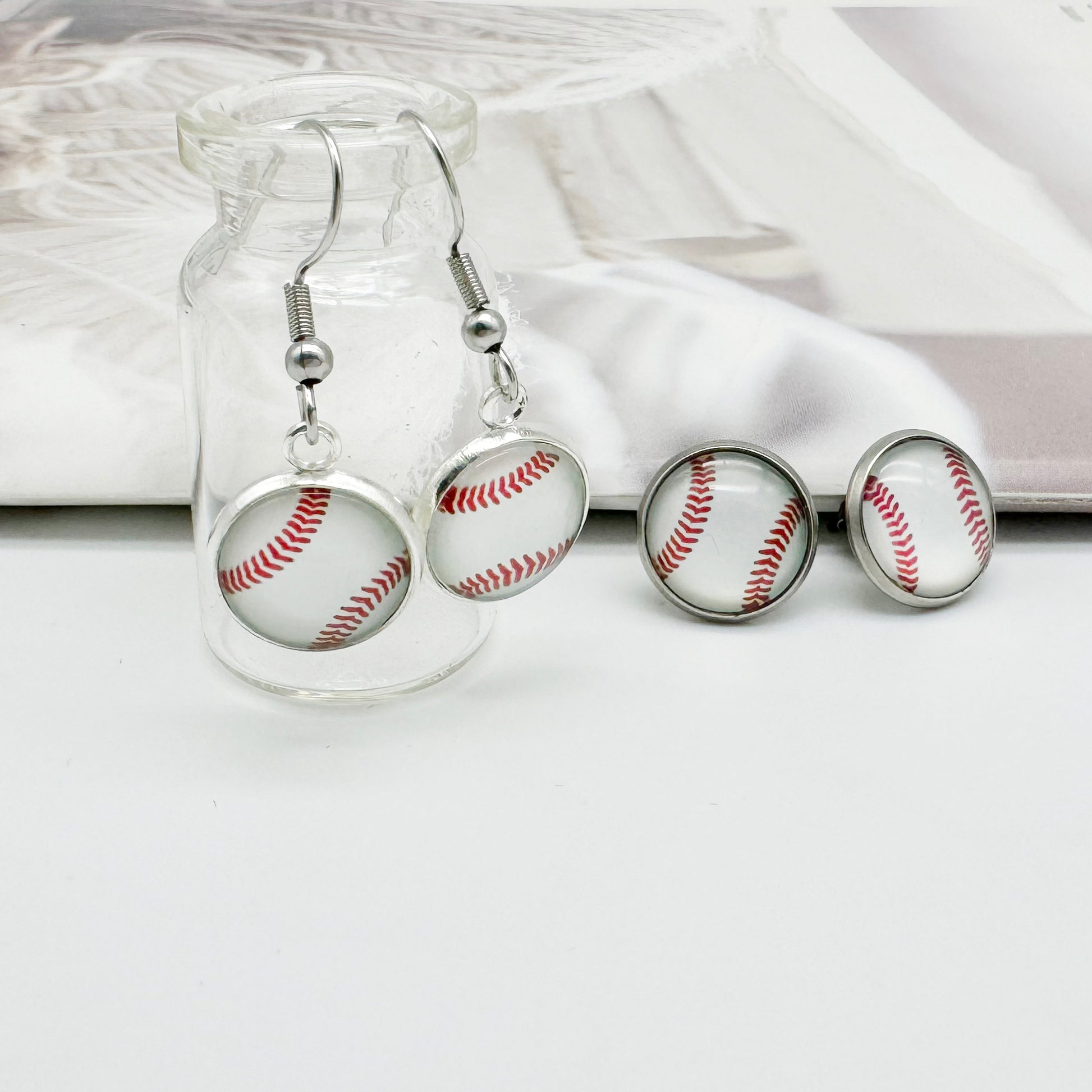 2 Pairs of Stainless Steel Softball Earrings for Women Hypoallergenic Glass Softball Cabochon Earring Studs Hooks Softball Player Fan Gift