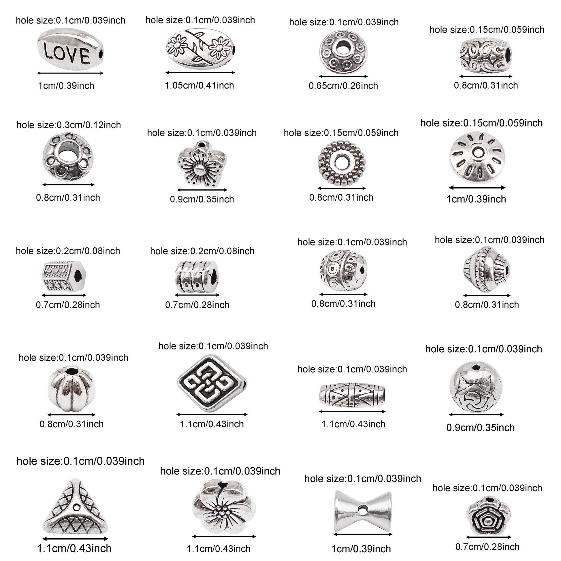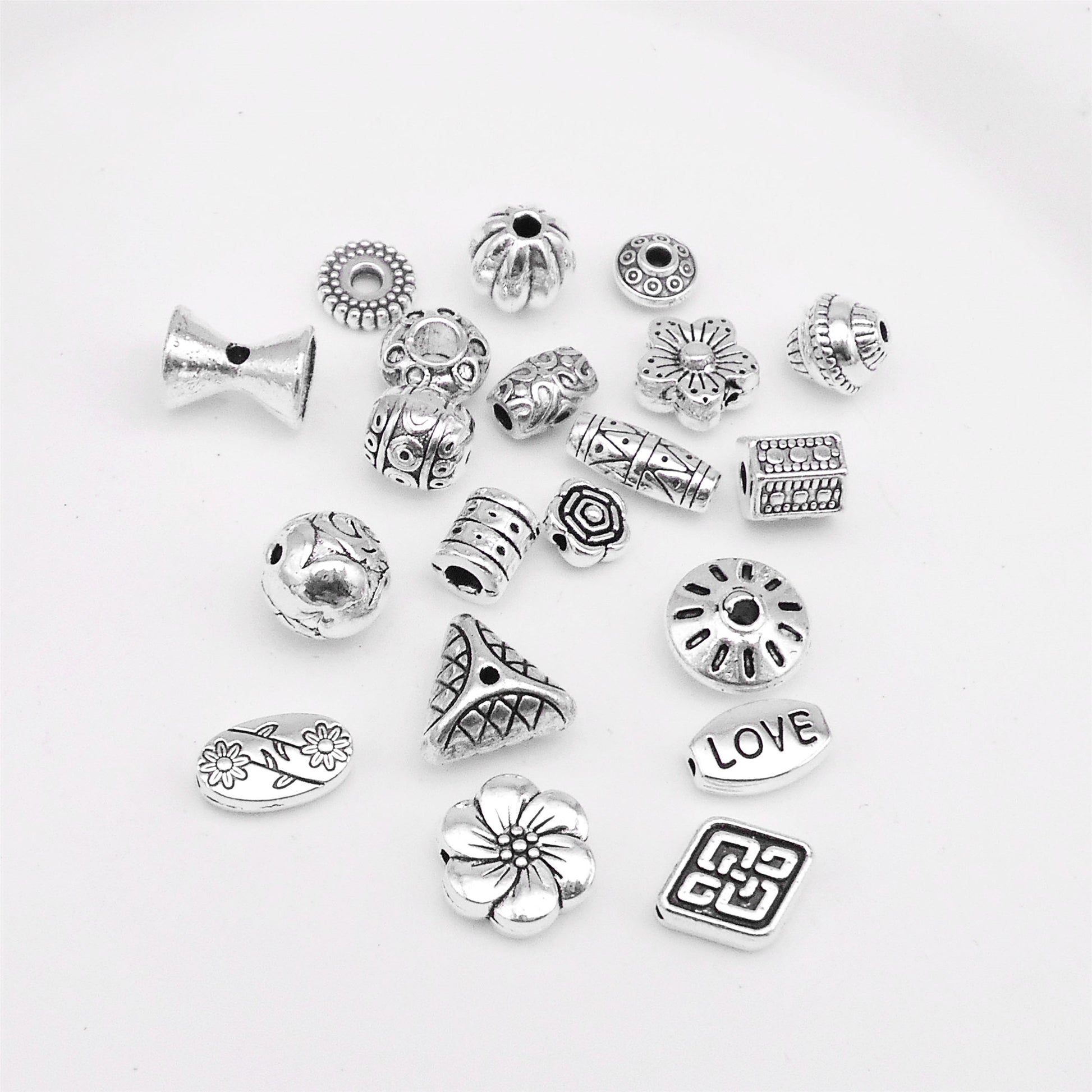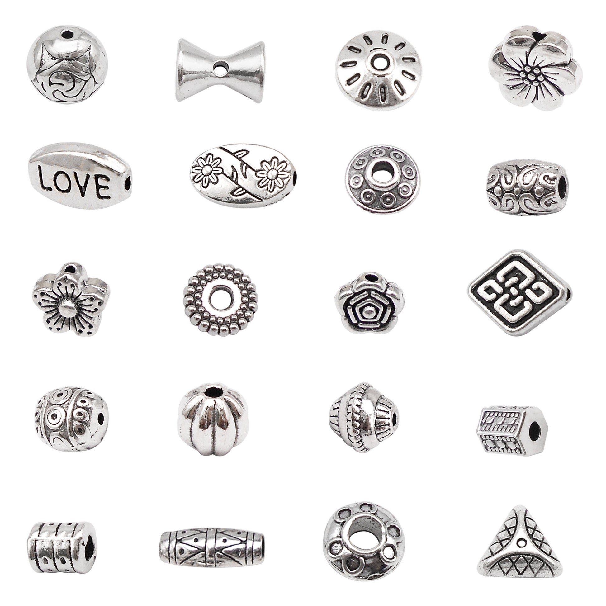 20 or 150PCS Antique Silver Round Flower Loose Beads Alloy Jewelry Spacer Beads for DIY Necklace Bracelet Accessories Crafts Decoration