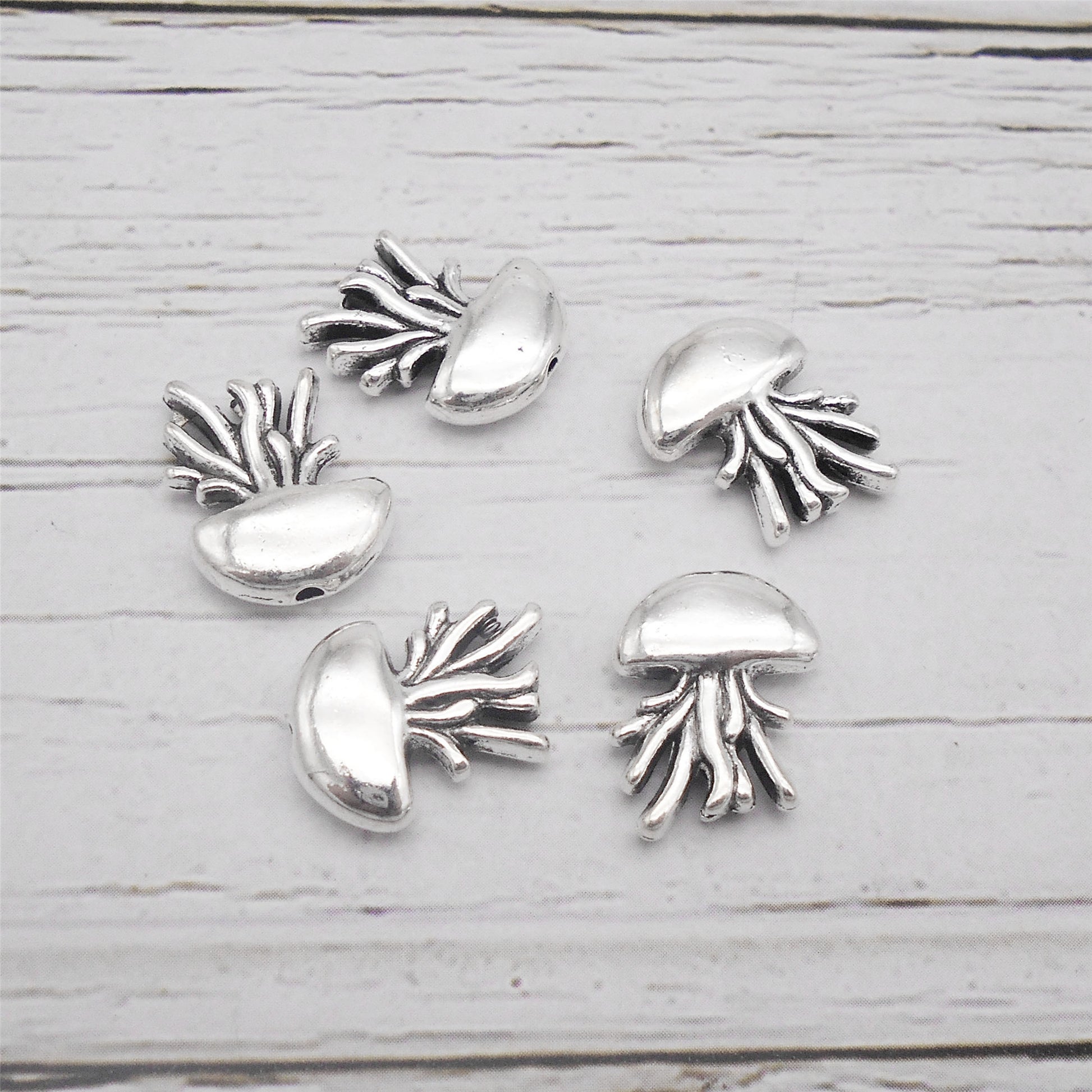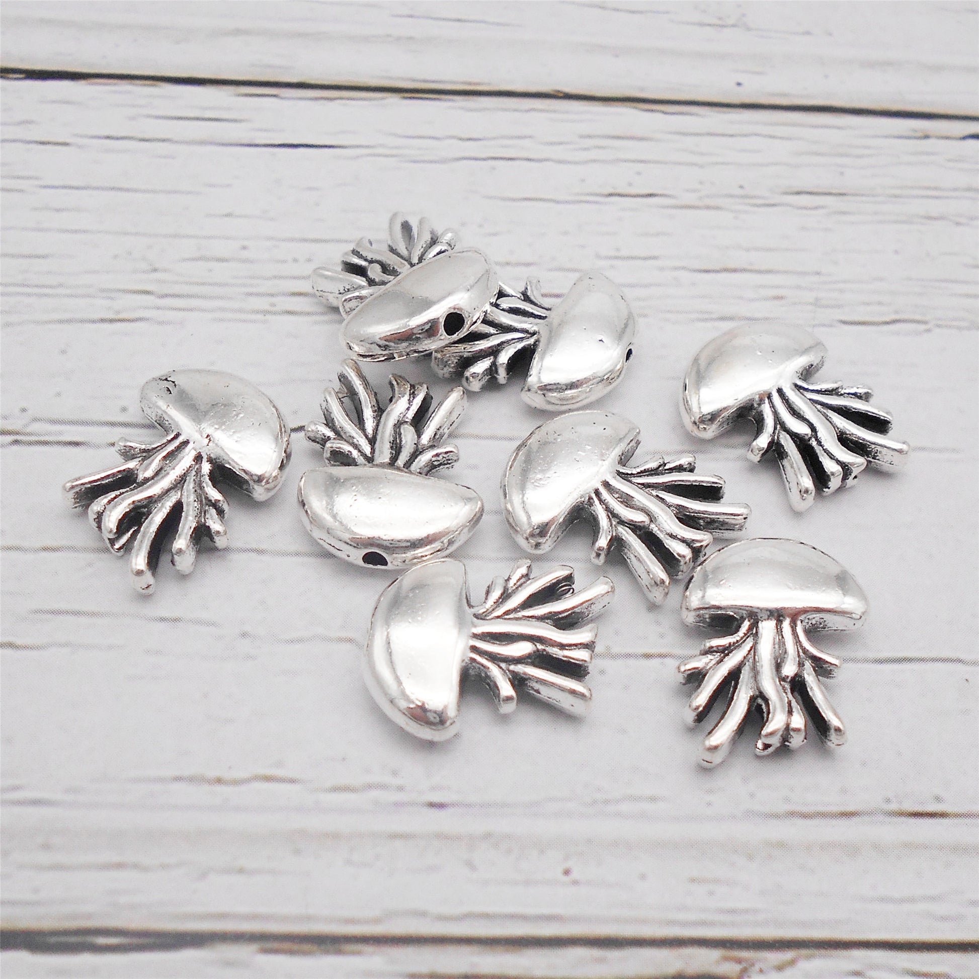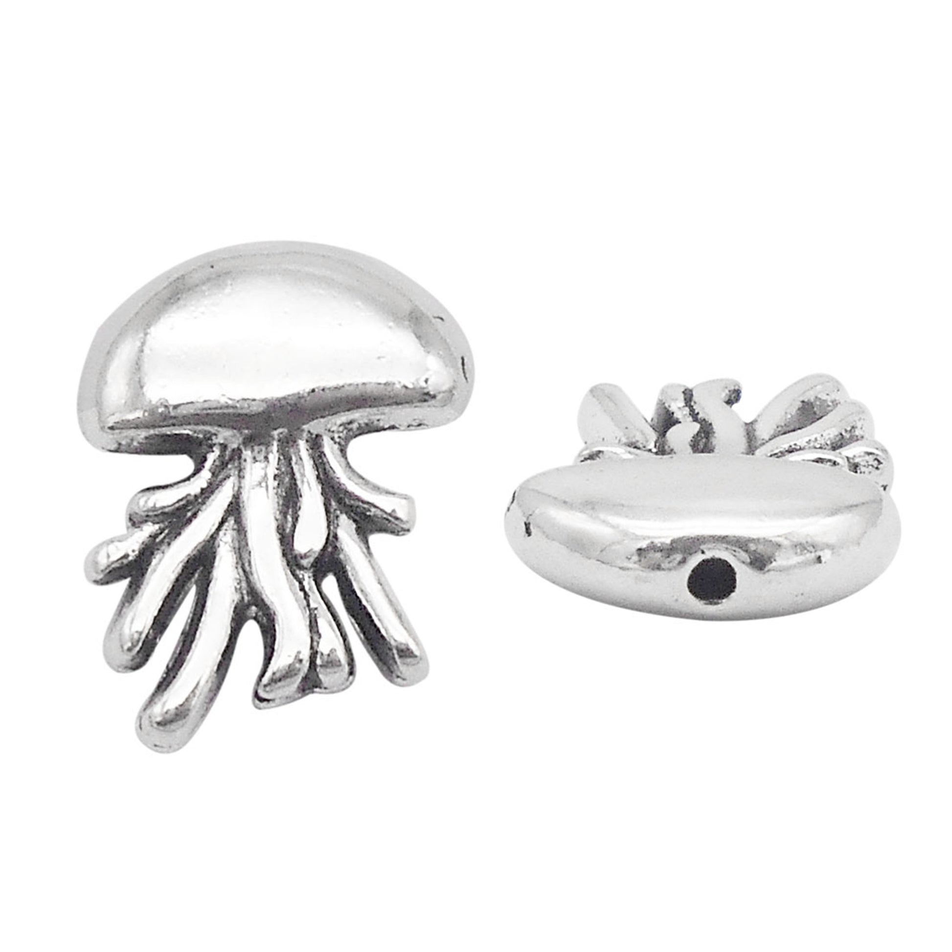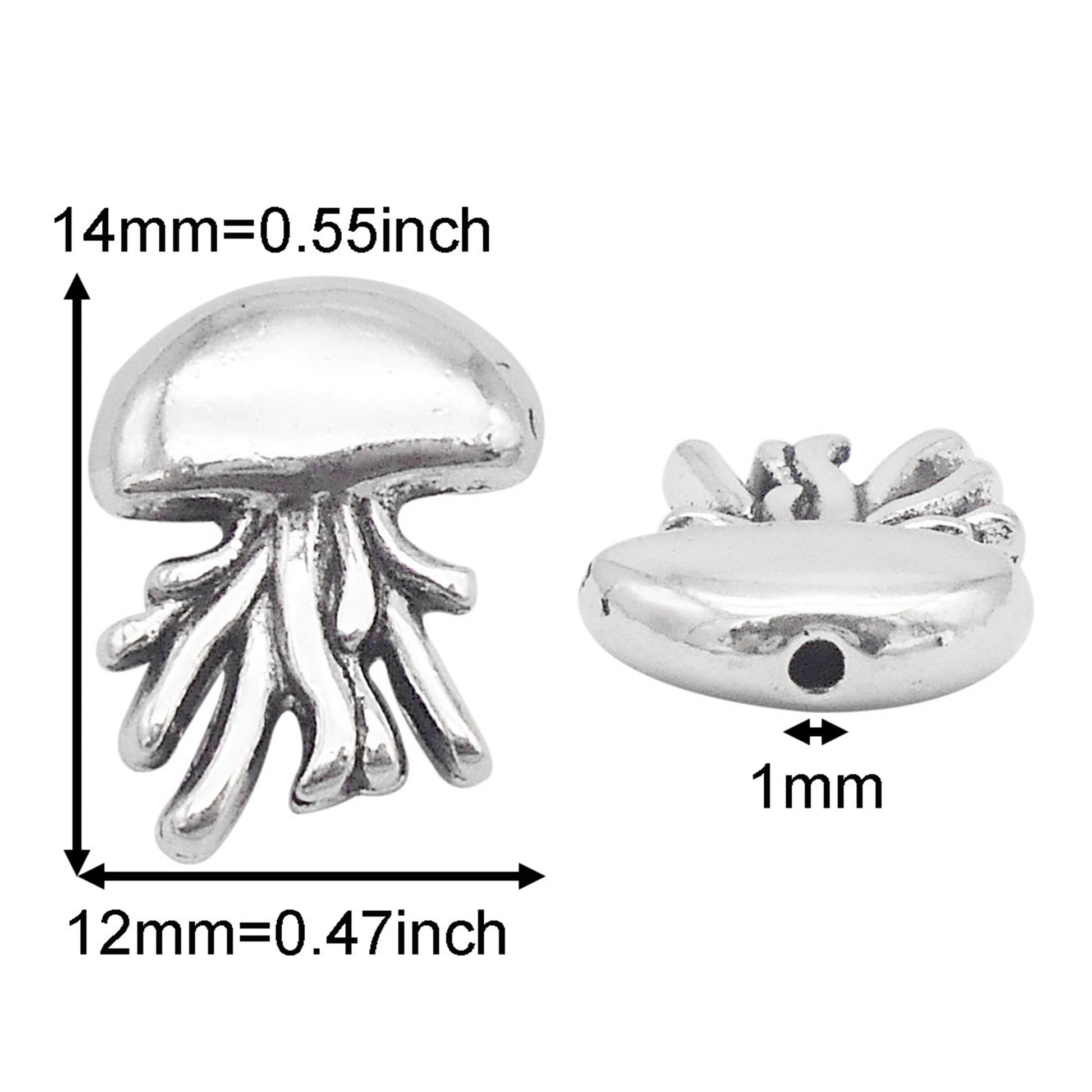 30pcs 14x12mm Antique Silver Jellyfish Hole Beads 1mm Hole Diameter, Alloy Marine Life Designed Spacer Beads for Jewelry Making Supplies DIY Craft Decor