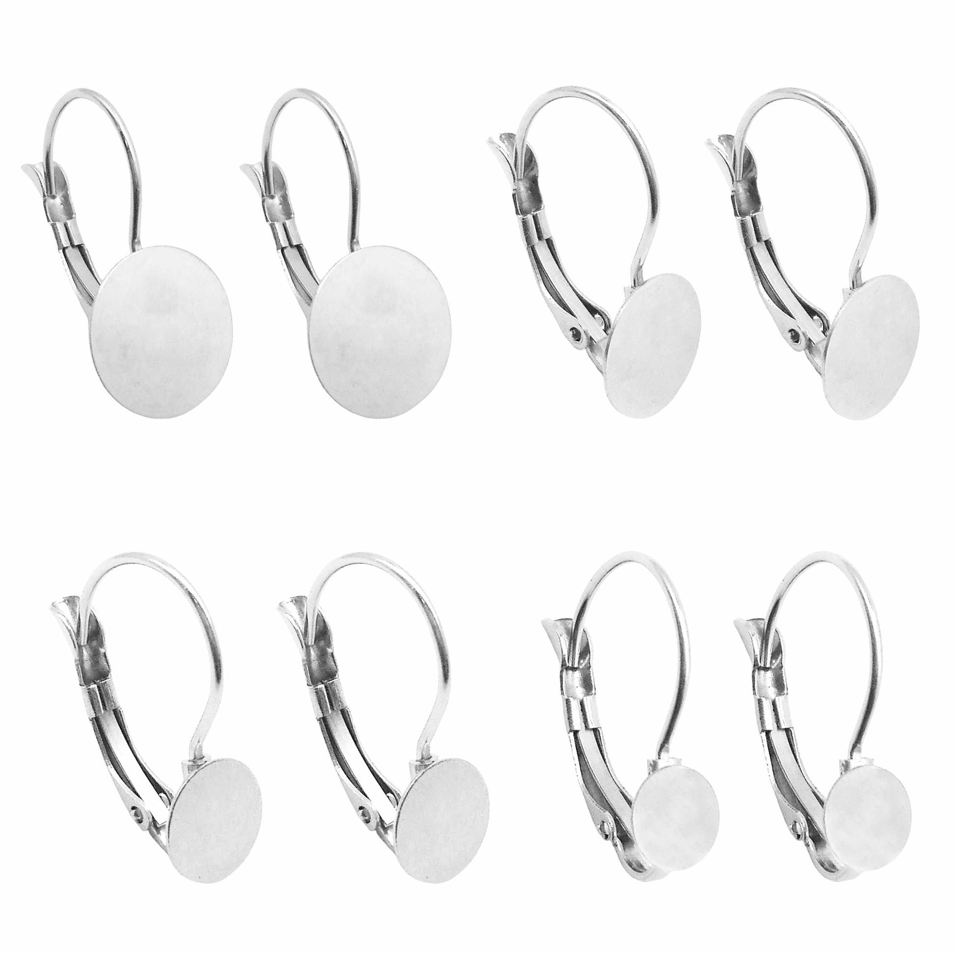 4 Pairs Quality Plated Stainless Steel French Lever Back Earring Round Blank Base, Fit 6/8/10/12mm Gems Cabochons, Silver Color Hypoallergenic Earring Jewelry Accessories