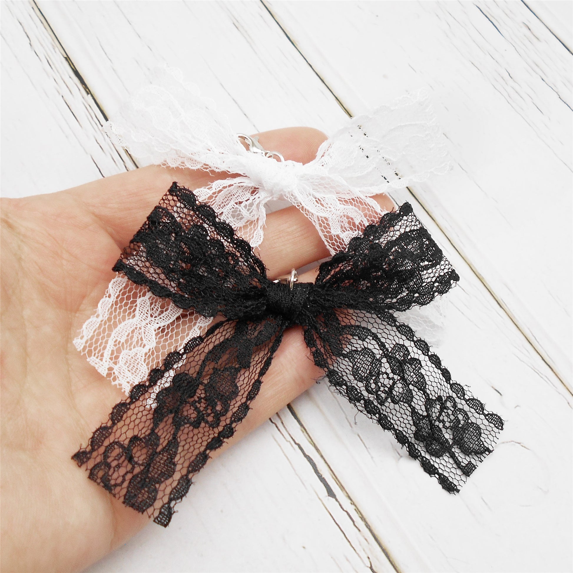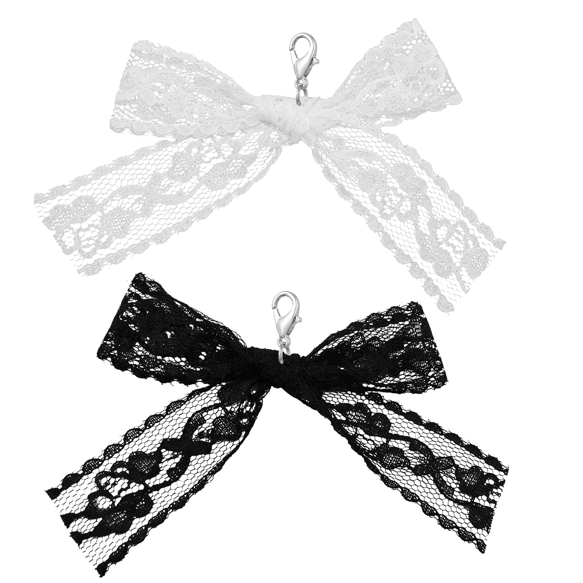 4PCS 75*87mm Handmade Lace Bow Shoe Charms with Lobster Clasp, Delicate Ribbon Bowknot Pendants Wedding Dress Accessories, Women Bags Clothes Purses Hanging Decor, Crafts Supplies