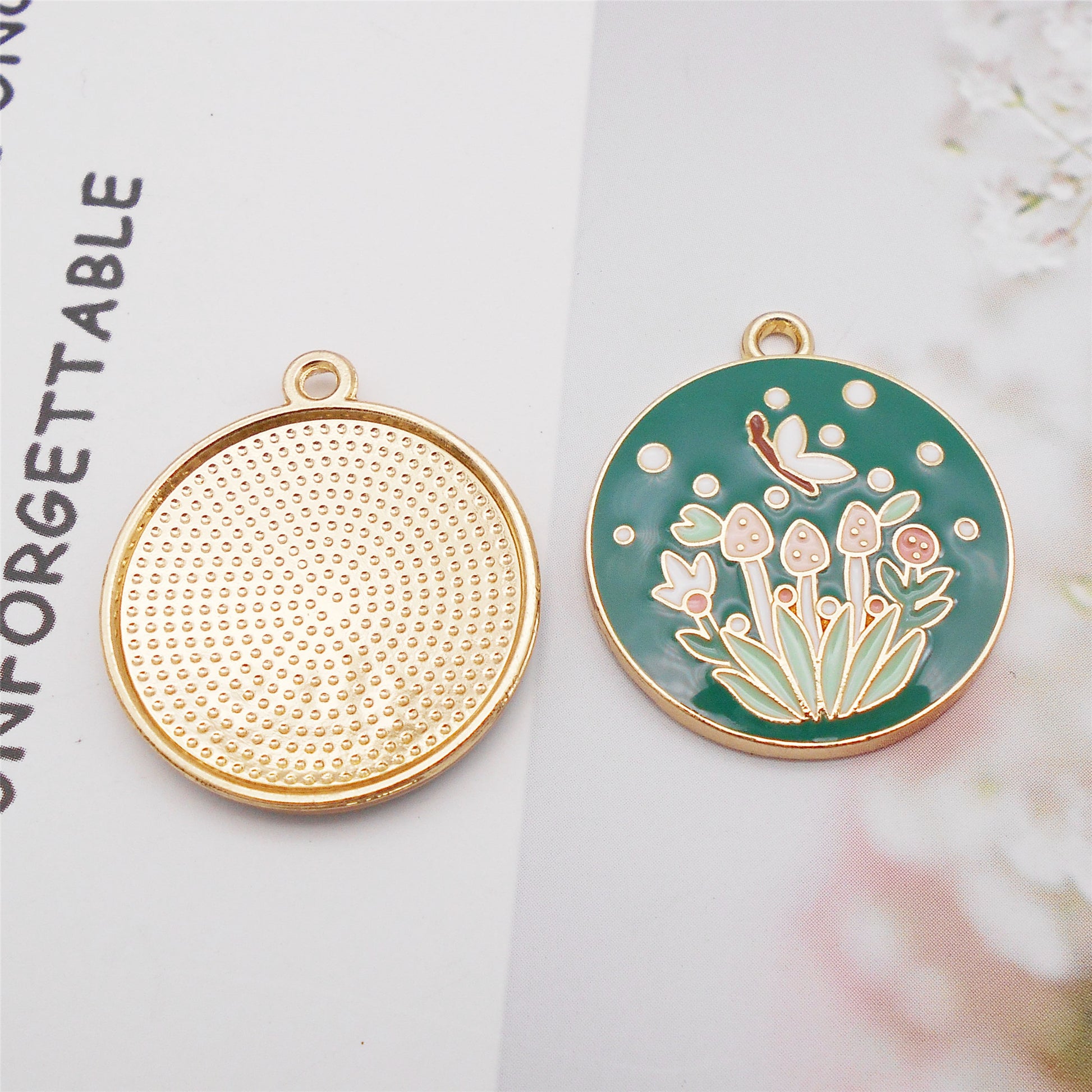 4Pcs Alloy Round Landscape Painting Charm 25x18mm Flower Pattern Pendant Enamel Jewelry Dangle for Necklace Earrings Making DIY Crafts Decor