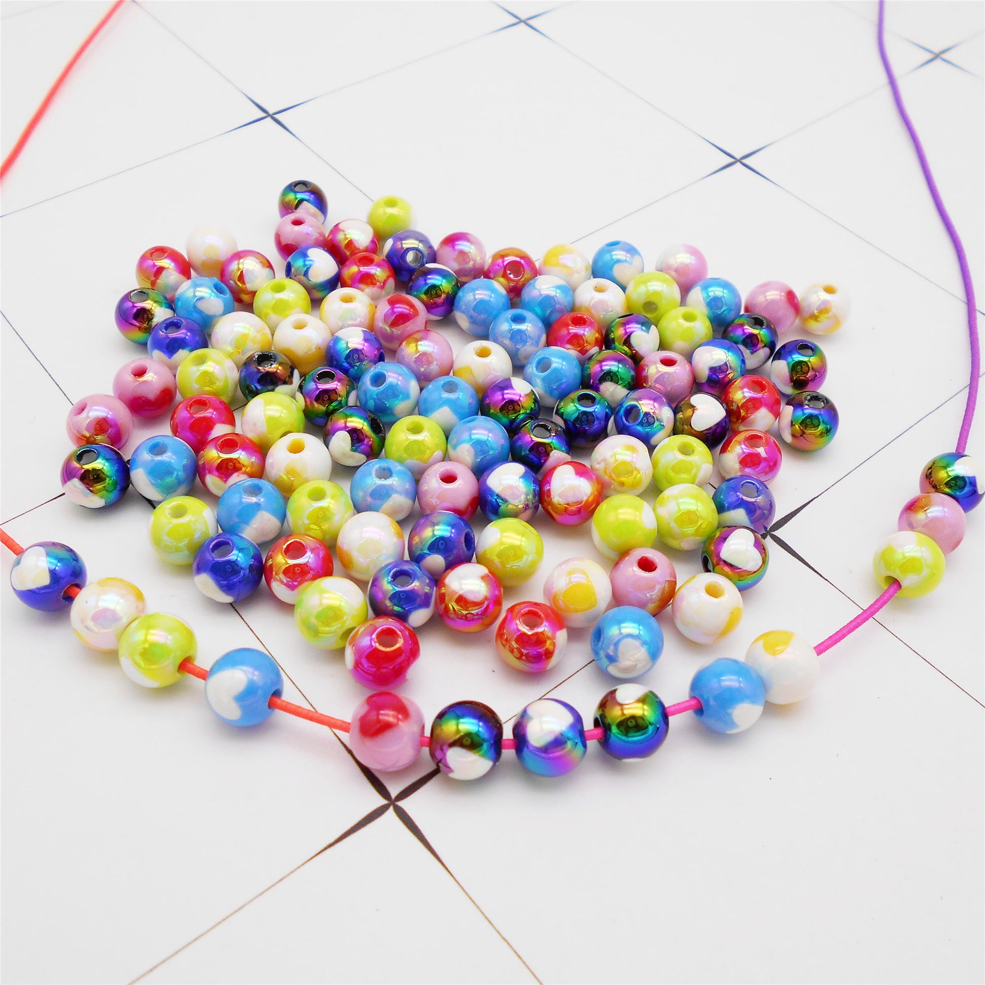 50Pcs 8mm Dazzling Plastic Ball Beads Heart Pattern Spacer Beads for Jewelry Making Accessories, Necklace Bracelet Earrings Supplies, Phone Chain Crafts Decor