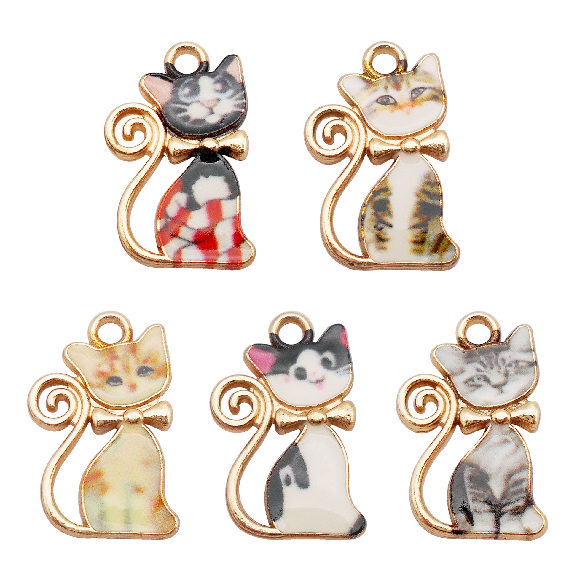 5pcs 13x21mm Quality Plated Cute Cat Charm Cartoon Kitty Black White Cat Pendant DIY Jewelry Accessory for Necklace Bracelet Earrings Making Key Chain Phone Chain Crafts Decor