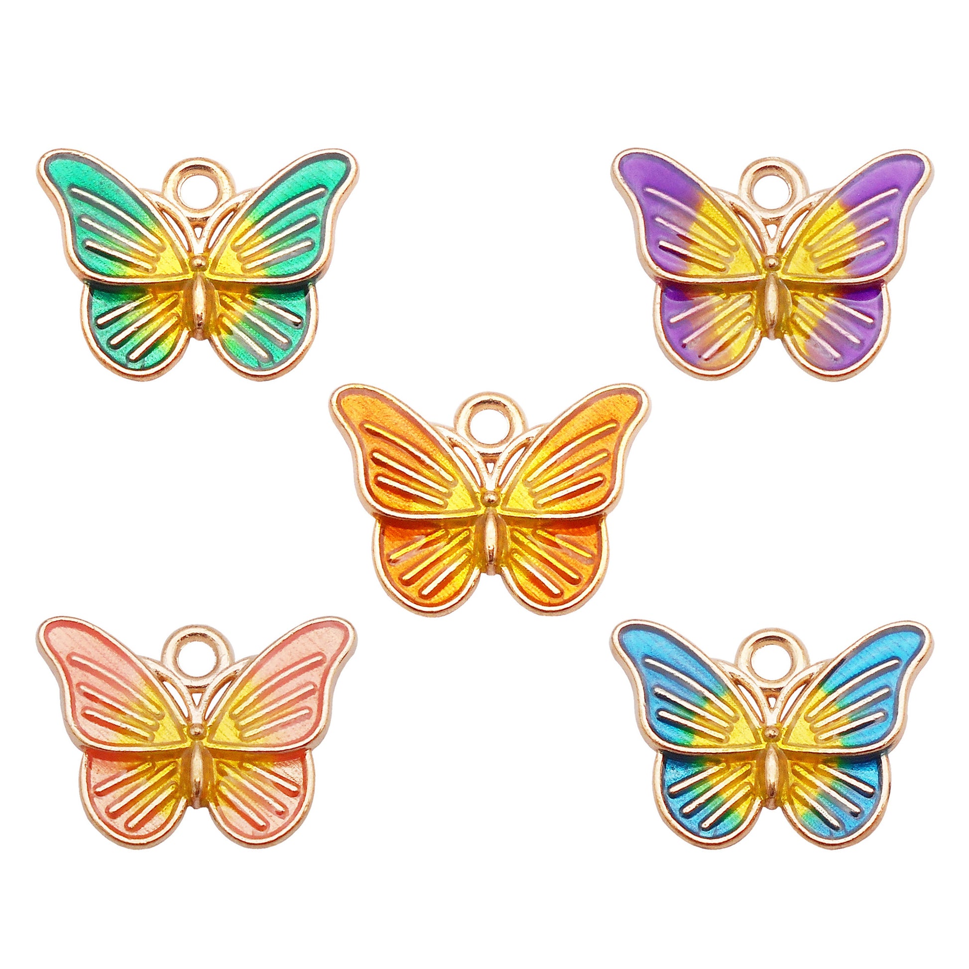 These 5pcs butterfly charms, measuring 14x18mm each, are crafted from durable metal alloy with vibrant multi-color enamel detailing. Ideal for expert jewelry makers, they add intricate insect-inspired elegance to necklaces, bracelets, earrings, keychains, and other DIY crafts. Their compact size and quality finish make them perfect for creating refined, eye-catching accessories.