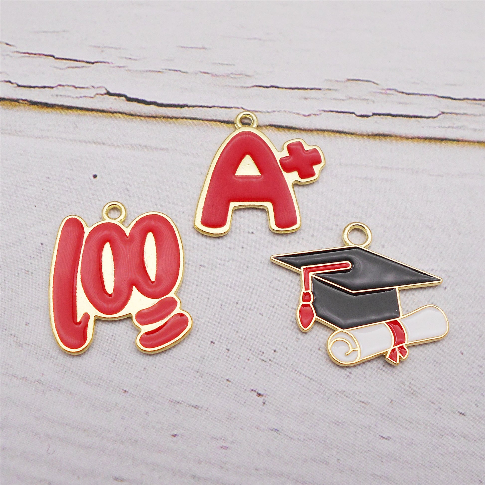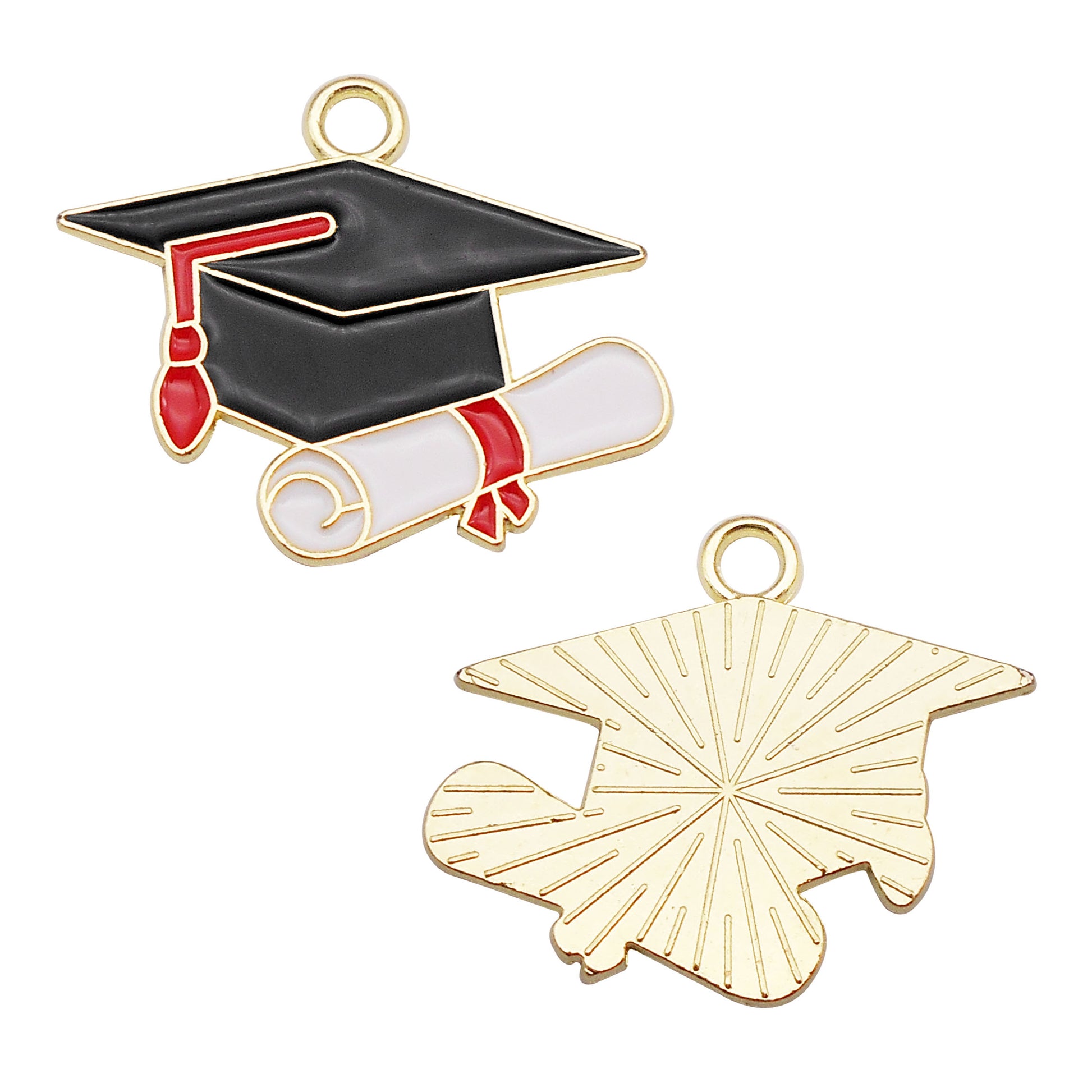 6Pcs Alloy Enamel Doctoral Cap, 100-Point, A+ Design Charms Graduation Time Pendant DIY Jewelry Making Accessory Graduation Gift for Friends