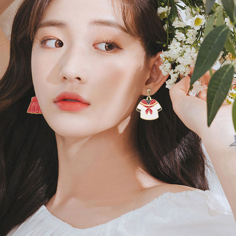 This set includes six meticulously crafted metal alloy charms inspired by Japanese school uniforms, featuring sailor collar tops (19x20mm) and skirts (17x19mm) in classic red and white colors. Ideal for jewelry making, DIY crafts, and decorative projects, these durable charms offer authentic detail and versatile design to enhance your creative work with a touch of cultural elegance.
