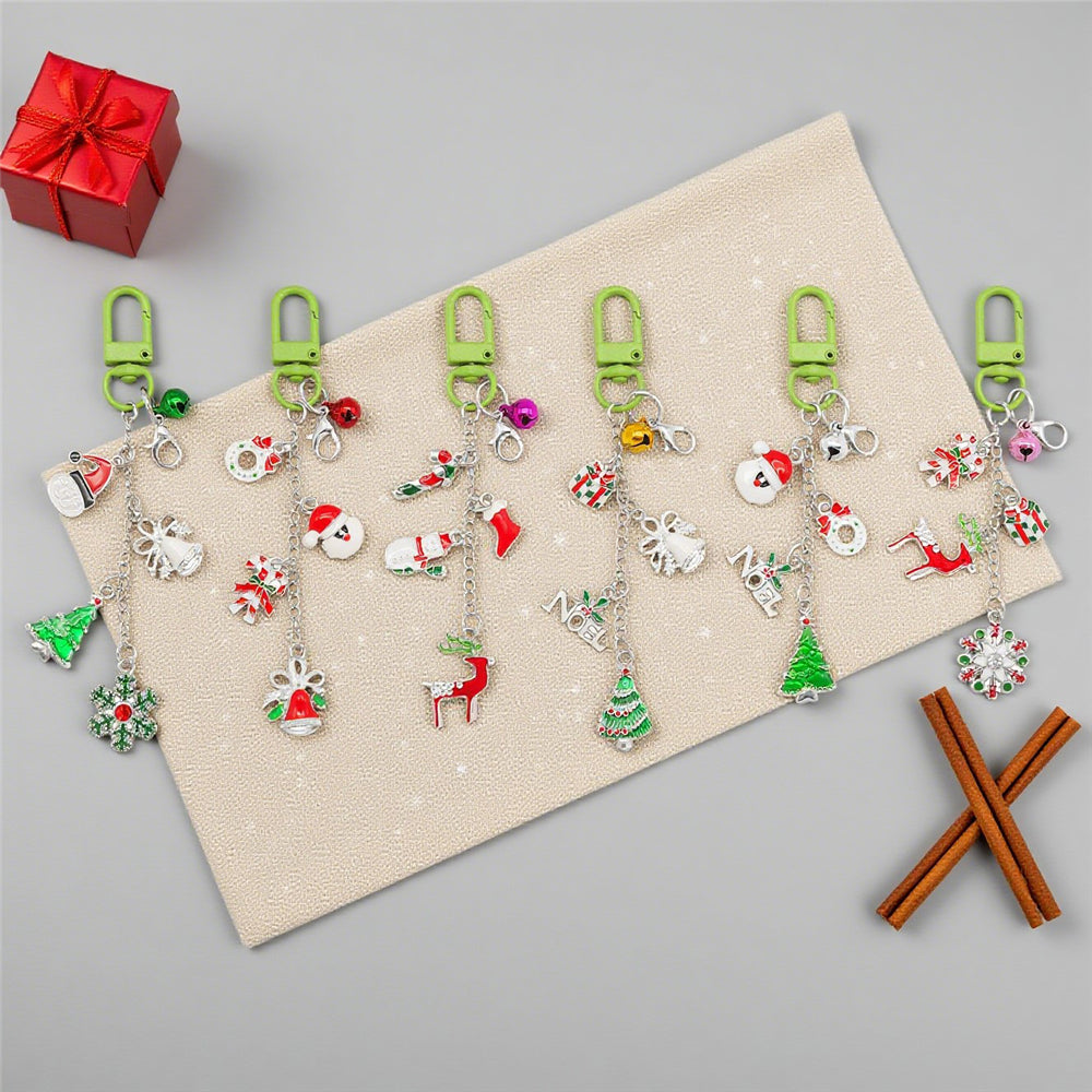6Pcs Lip Balm Charm Lip Gloss Keychain Metal Christmas Dangle Pendant w/ Clasp for Bag Purse Key Hanging Decor