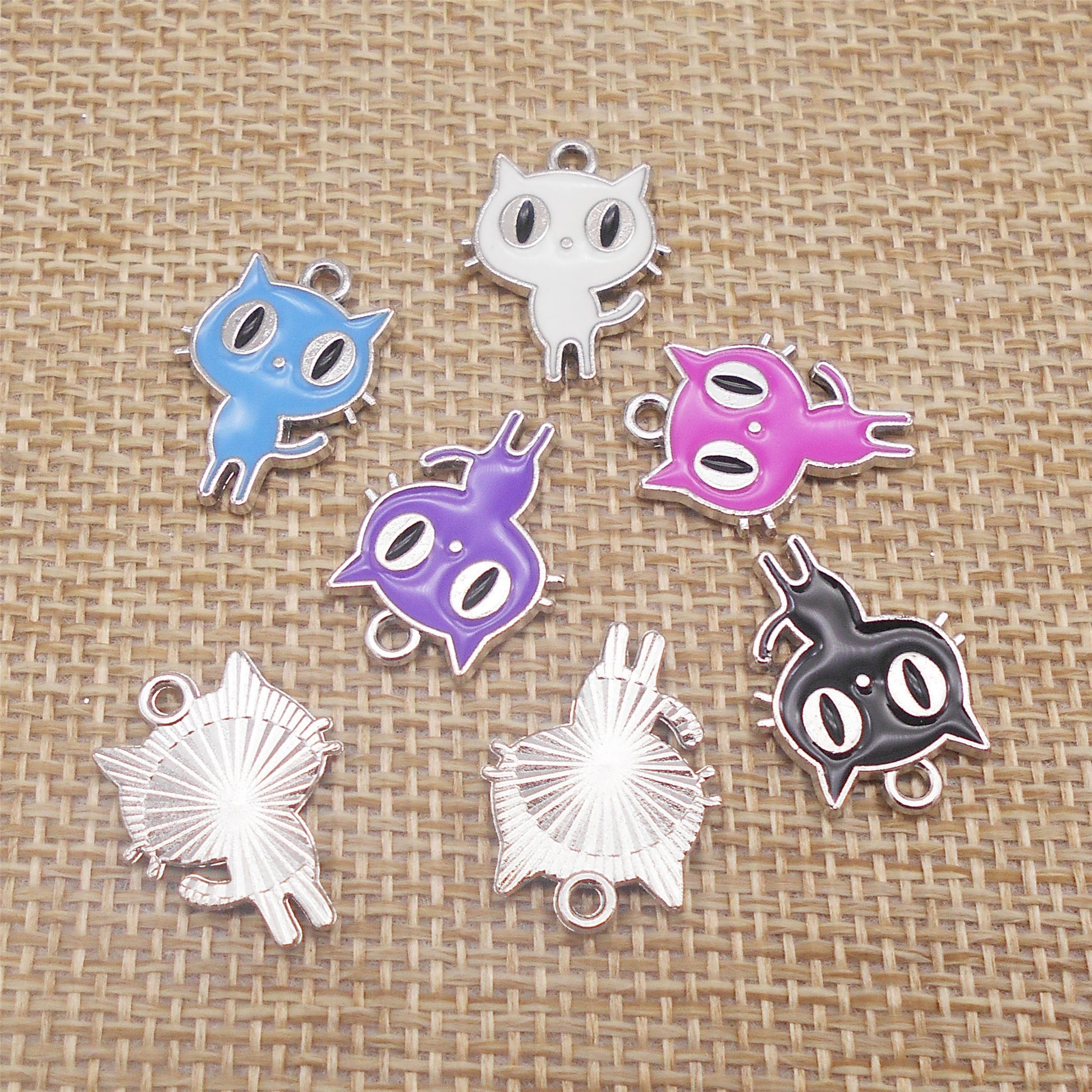 7pcs Cute Big Eye Kitty Enamel Charms 19x15mm Metal Halloween Cat Pendant for Necklace Jewelry Making, Phone Chain Keychain Crafts Decor