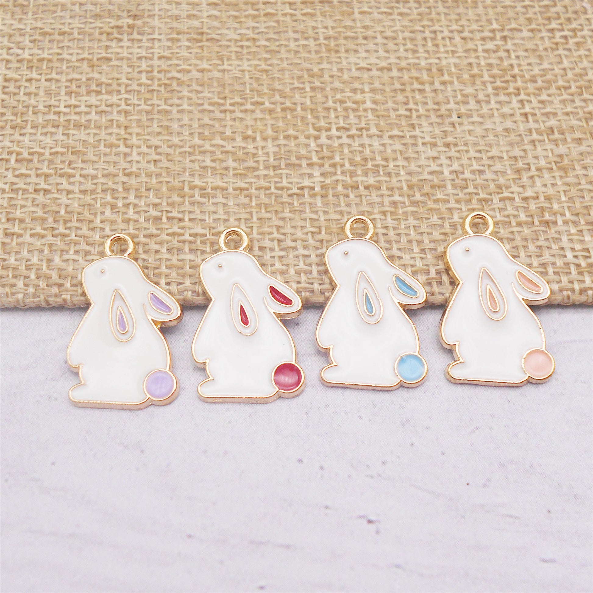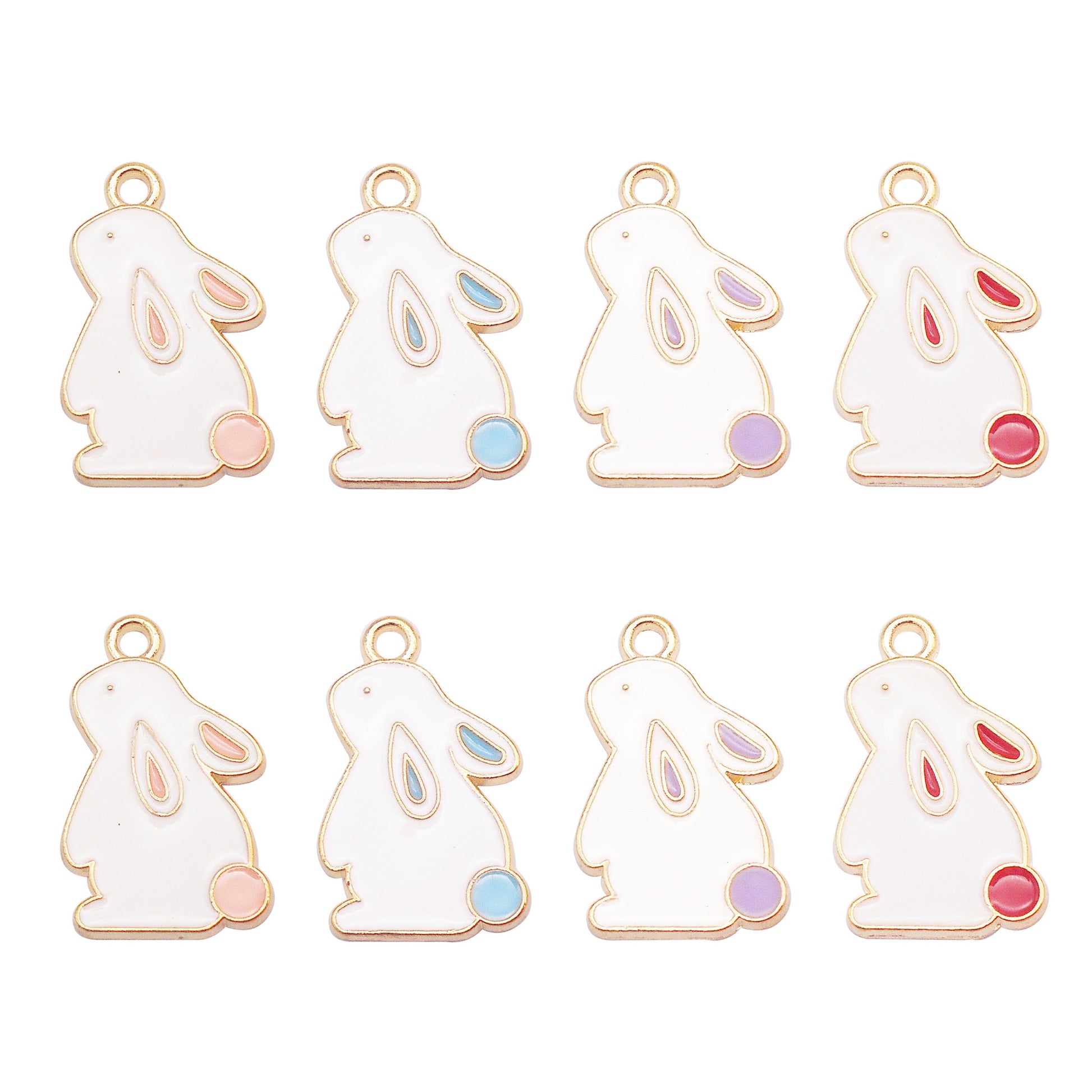 8Pcs Cute Enamel Bunny Charm 22x14mm Head-Up Rabbit Pendant Metal Material Jewelry Accessories for Necklace Earrings Making, DIY Crafts Decor