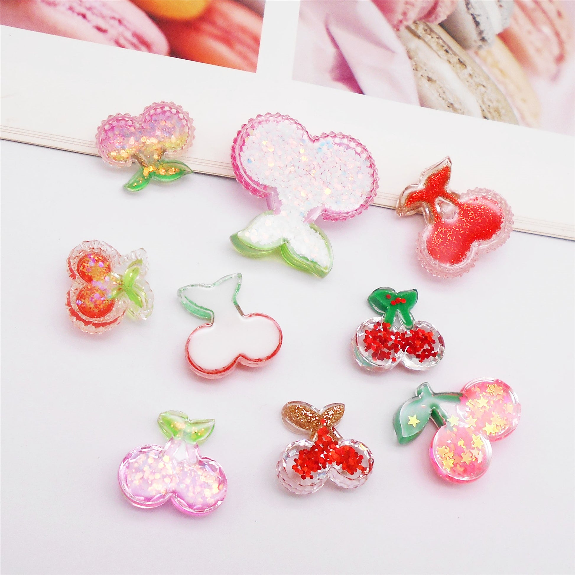 9pcs Sparkling Resin Cherry Cabochons Flat Back 3D Fruit Embellishment for Shoe Charms Making Jewelry Supplies Hair Clip Crafts Decor