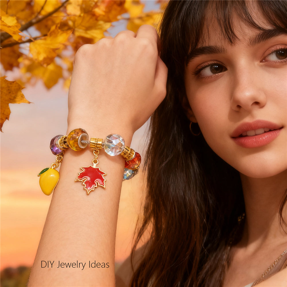 Autumn Series Enamel Charm with Tube Bail Bead-Metal Pendant DIY Jewelry Accessories for Necklace Bracelet Earrings Making