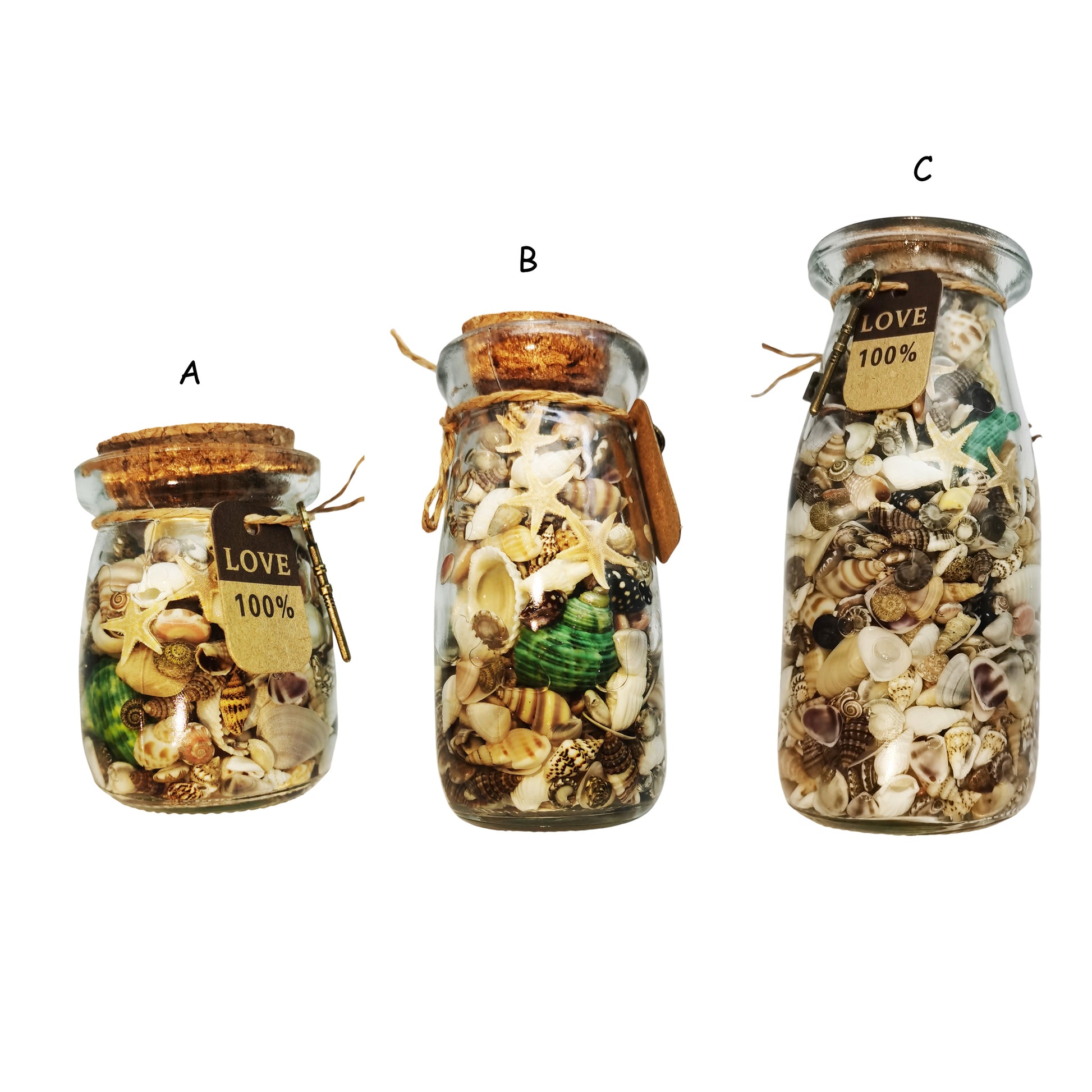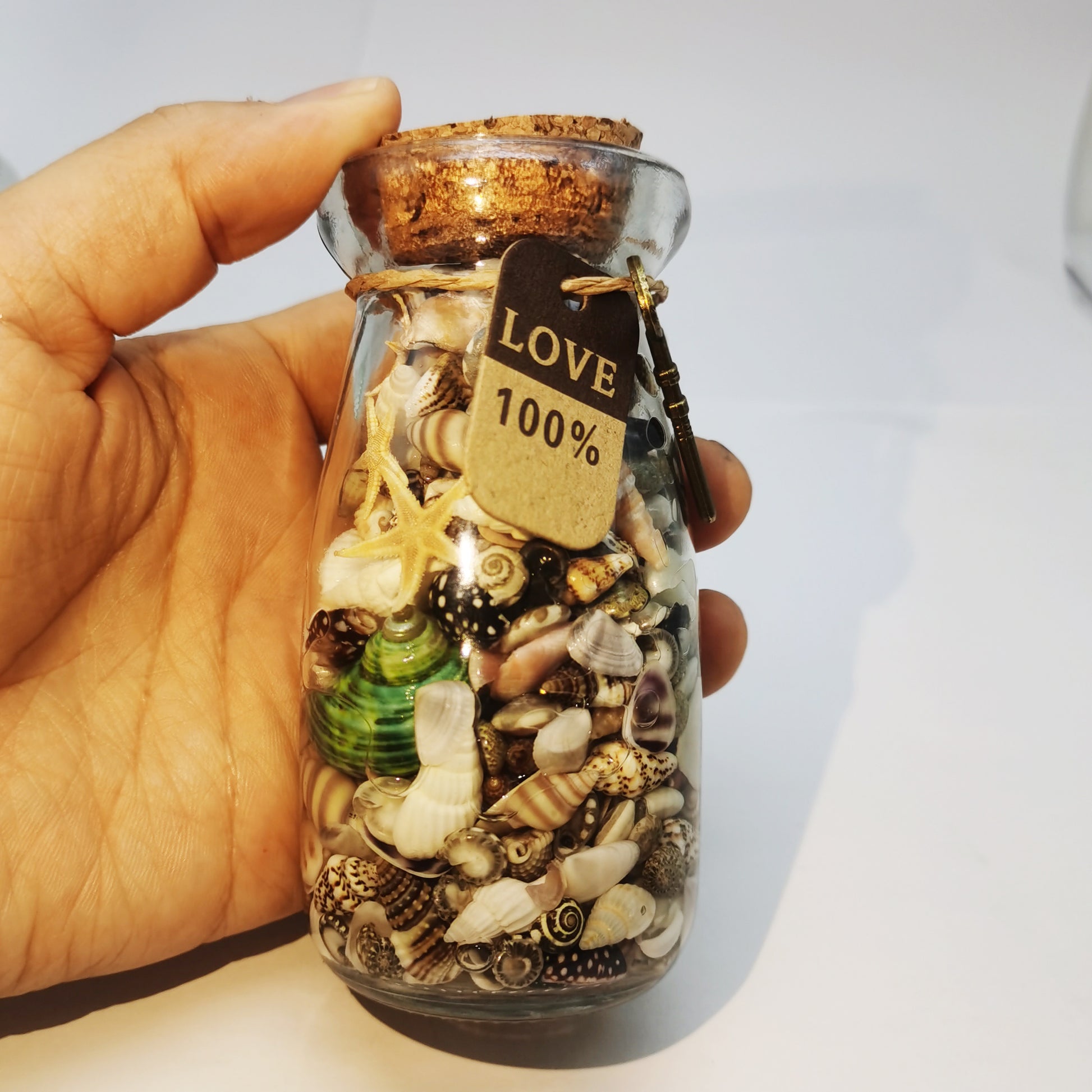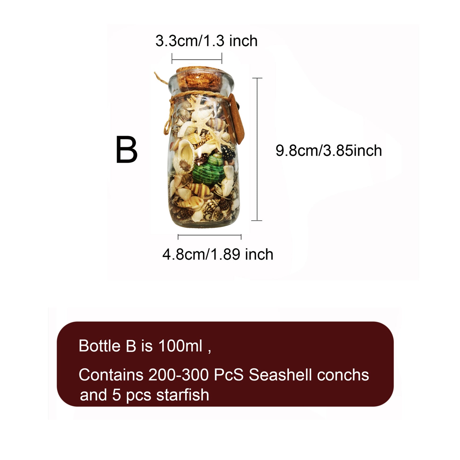 Glass Wishing Bottle Jar with Shells Conch Seashell Starfish Cork Lid Stopper Rope Key for DIY Crafts Gifts Party Wedding Decoration