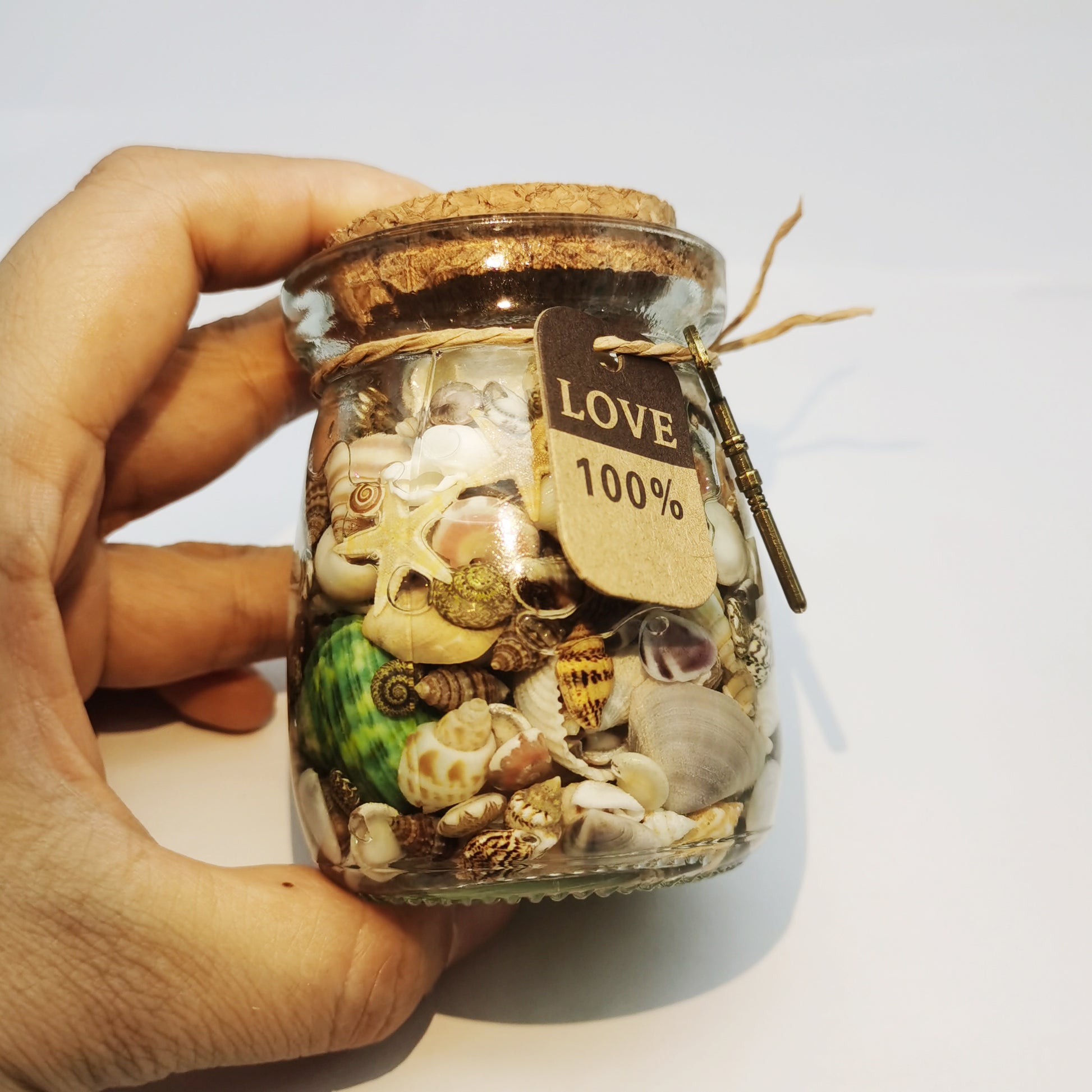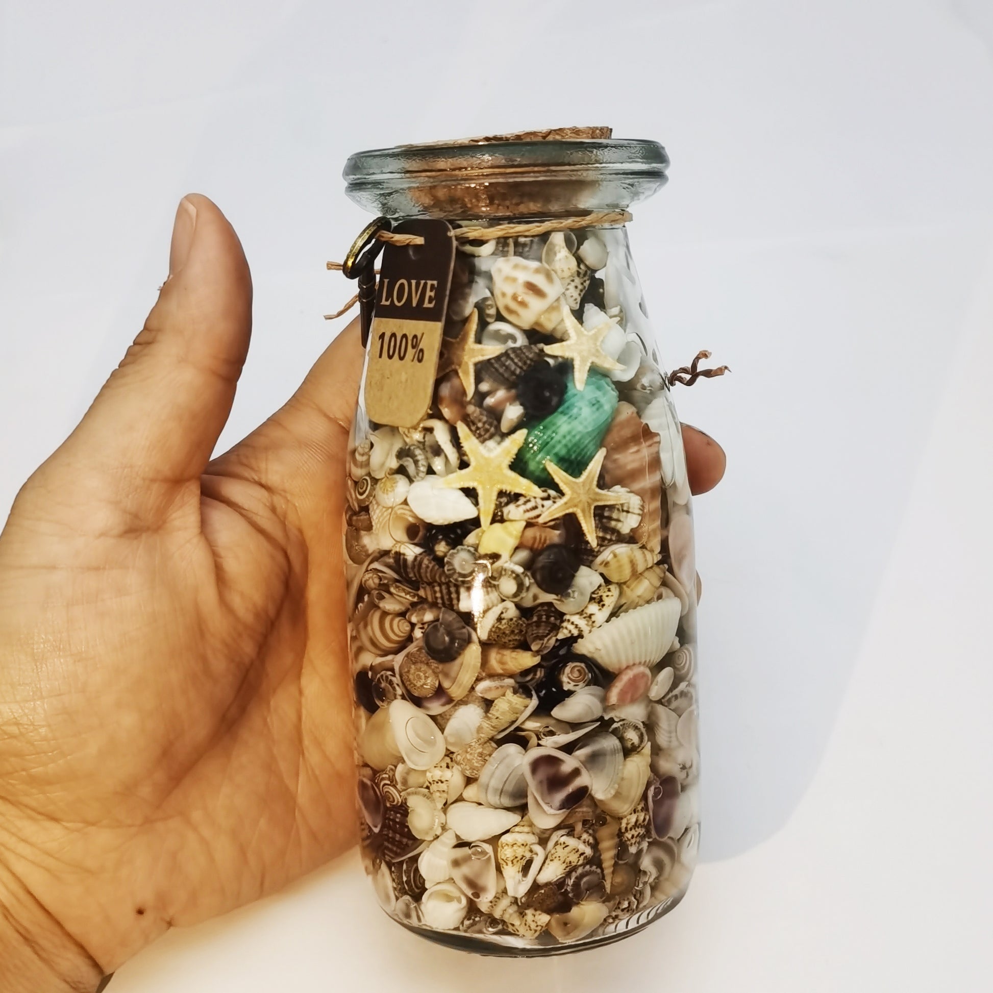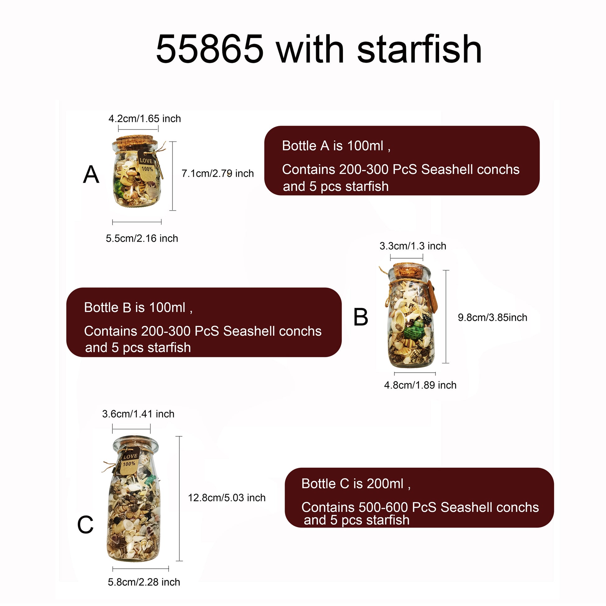 Glass Wishing Bottle Jar with Shells Conch Seashell Starfish Cork Lid Stopper Rope Key for DIY Crafts Gifts Party Wedding Decoration